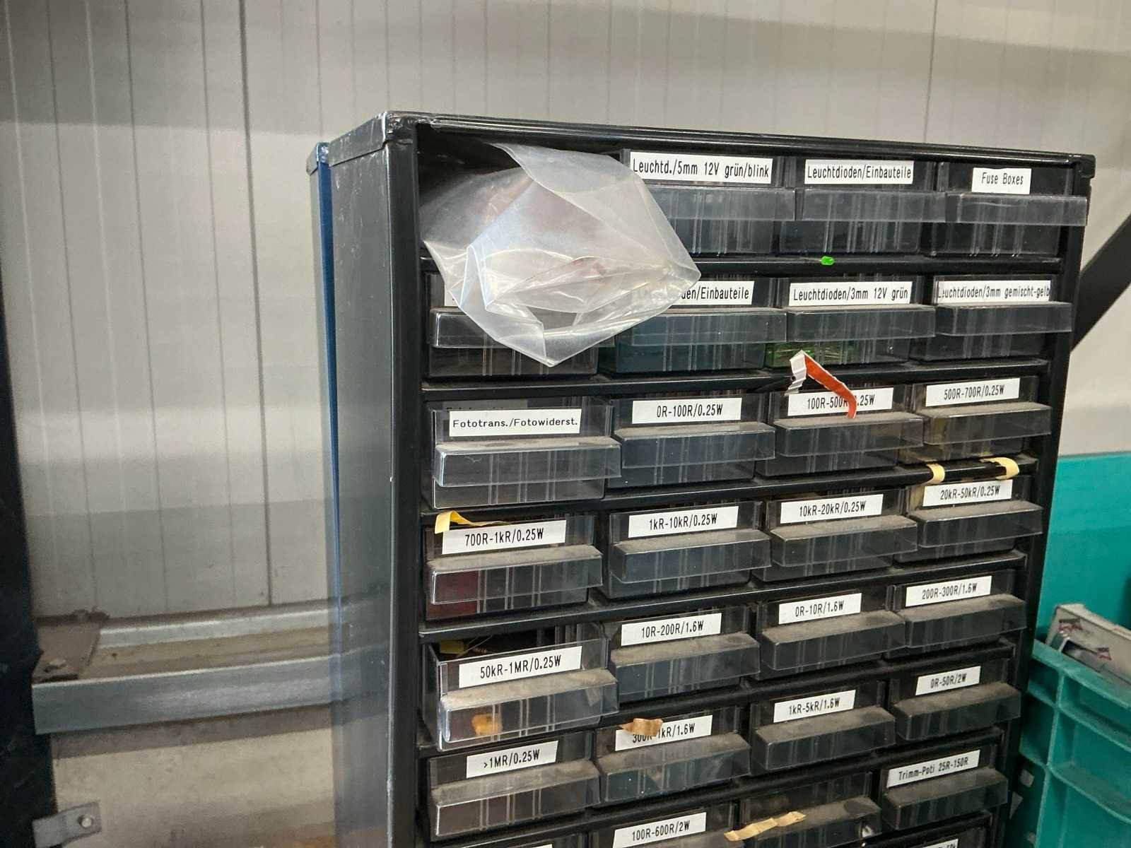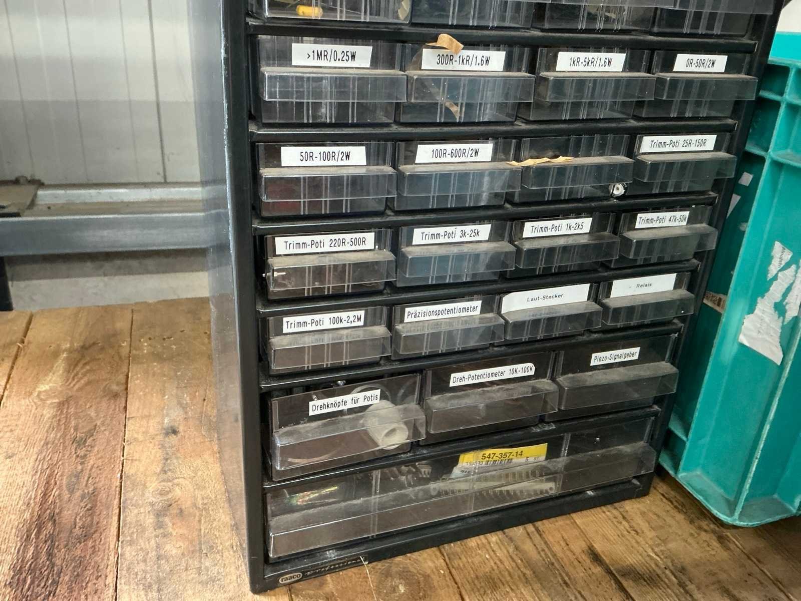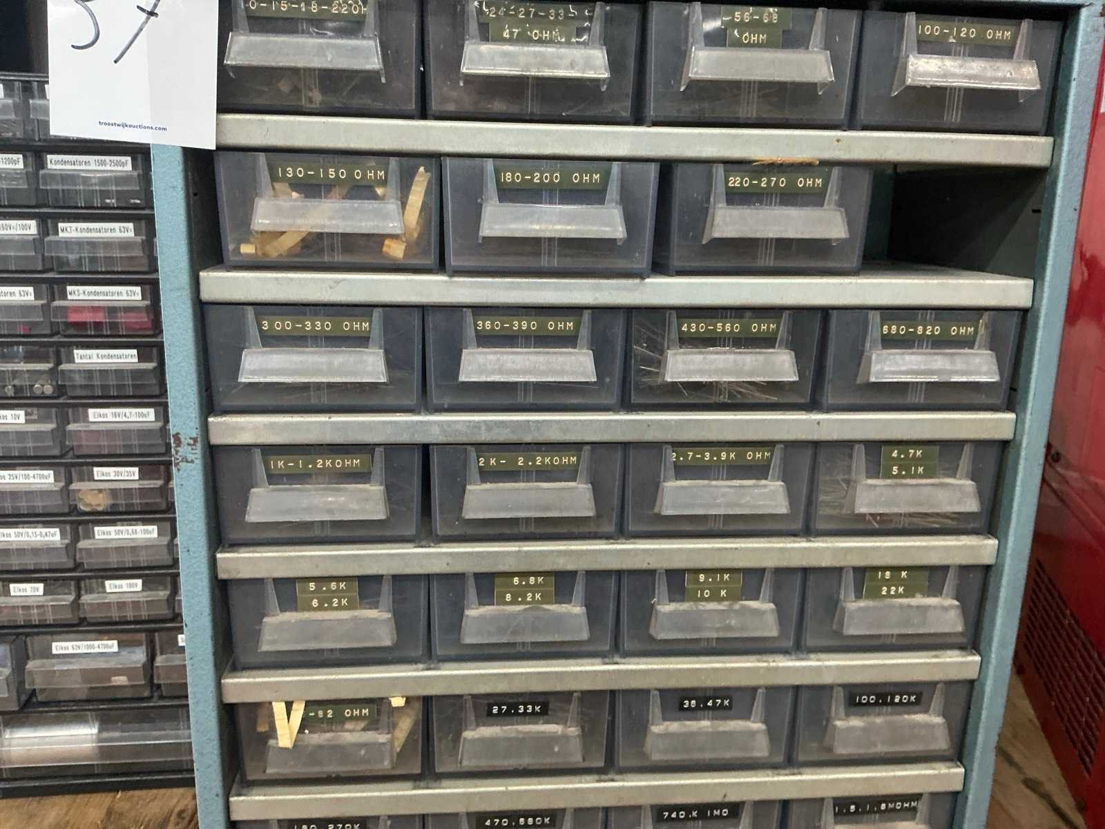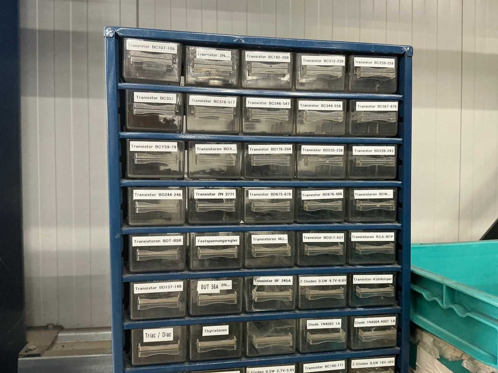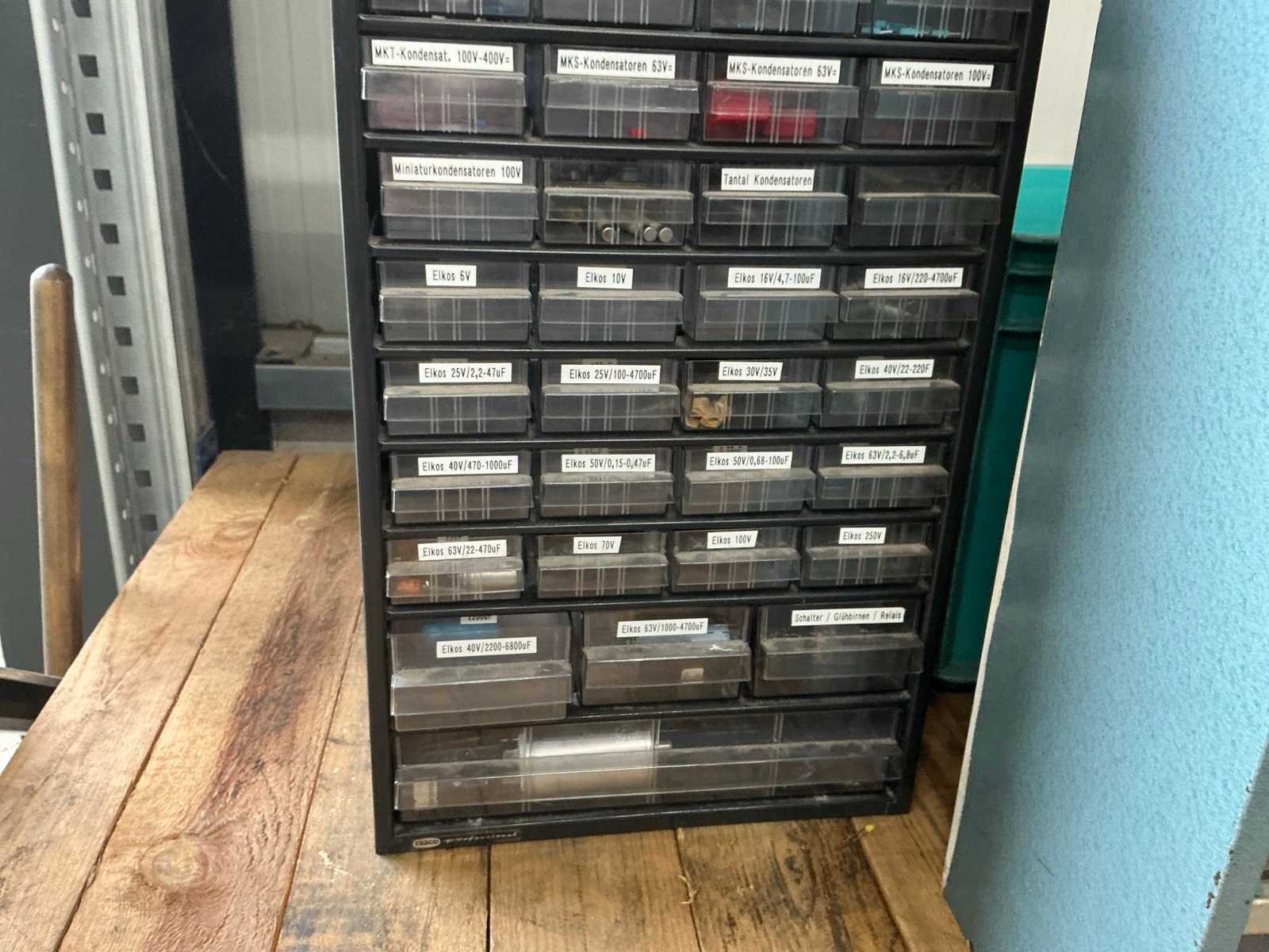 Inhoud bestaande uit onder andere condensatoren, weerstanden, transistoren, diodes, etcetera Nee