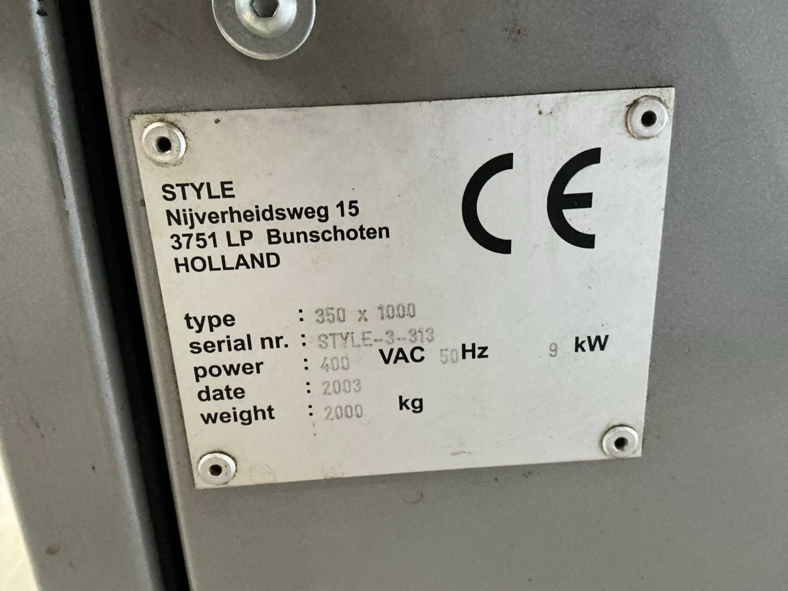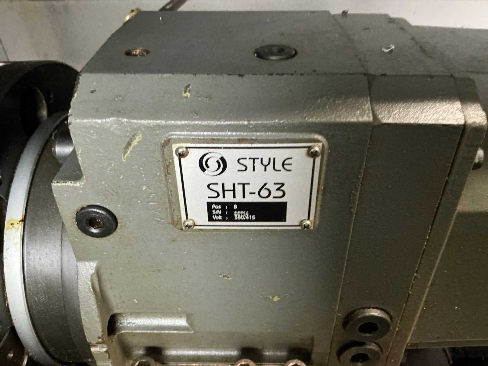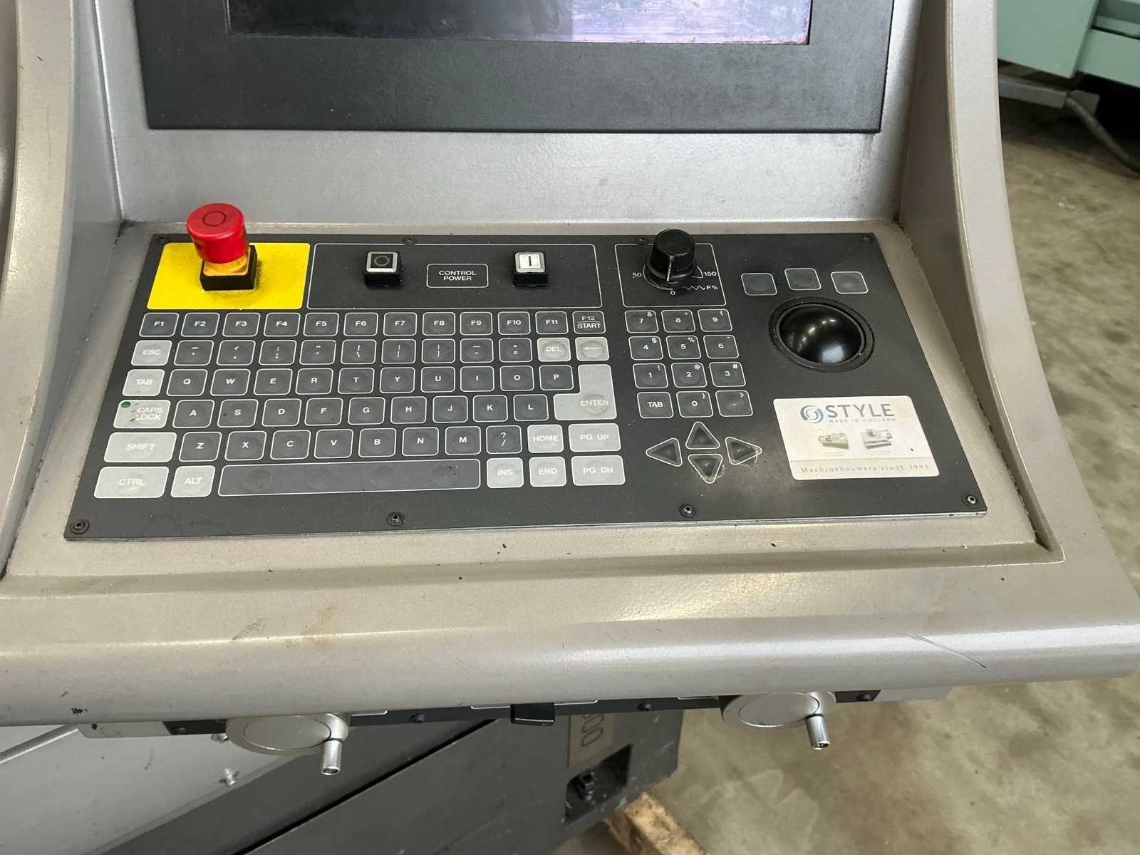 Voorzien van Style SHT-63 8-voudige gereedschapwisselaar, beeldscherm defect Nee Merk: Style Type: 350x1000 Bouwjaar: 2003 Serienummer: STYLE-3-313 Draai: 350mm Draailengte: 1000mm Snelheid van n =: 25rpm Snelheid tot n =: 3000rpm Aantal gereedschapwisselstations: 8 CNC-besturing, merk, type: Style teach-in Motorvermogen (kW): 9kW Aansluiting: 400V Machinegewicht: 2000kg Afmeting l: 2400mm Afmeting b: 2100mm Afmeting h: 1850mm