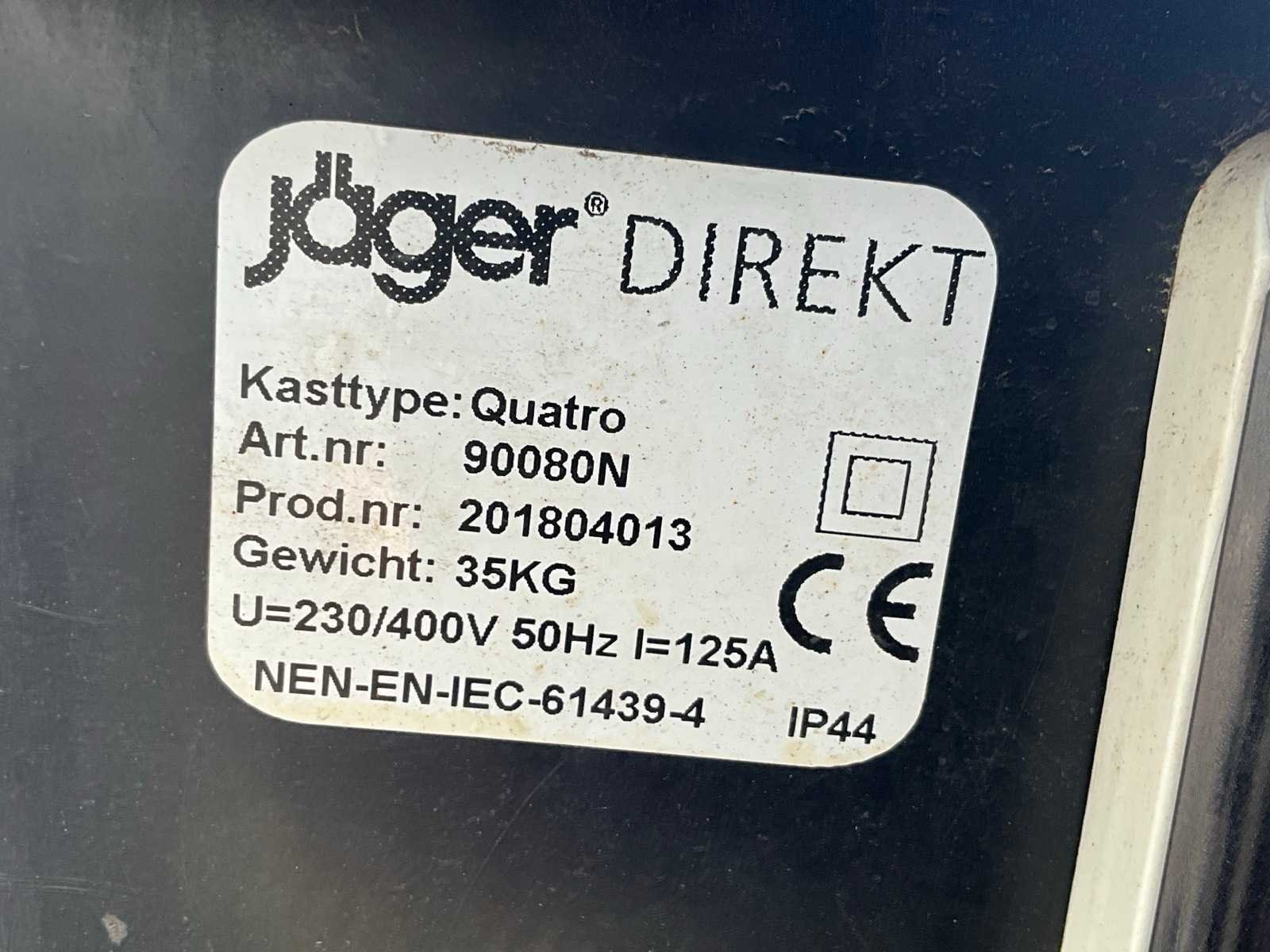 Nee Merk: Jäger Type: Quatro Aansluiting: 125A Aantal uitgangen 230v: 4 Aantal uitgangen 380 v / 16 a: 4 Aantal uitgangen 380 v / 63 a: 4 Eigen gewicht: 30kg Totale afmeting L: 600mm Totale afmeting Breedte: 600mm Totale afmeting Hoogte: 1100mm