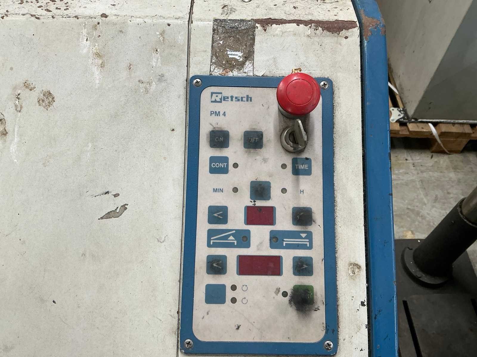 Nee Merk: Retsch Type: PM4 Serienummer: 22009001 Aansluiting: 230V Totale afmeting L: 820mm Totale afmeting Breedte: 650mm Totale afmeting Hoogte: 1200mm