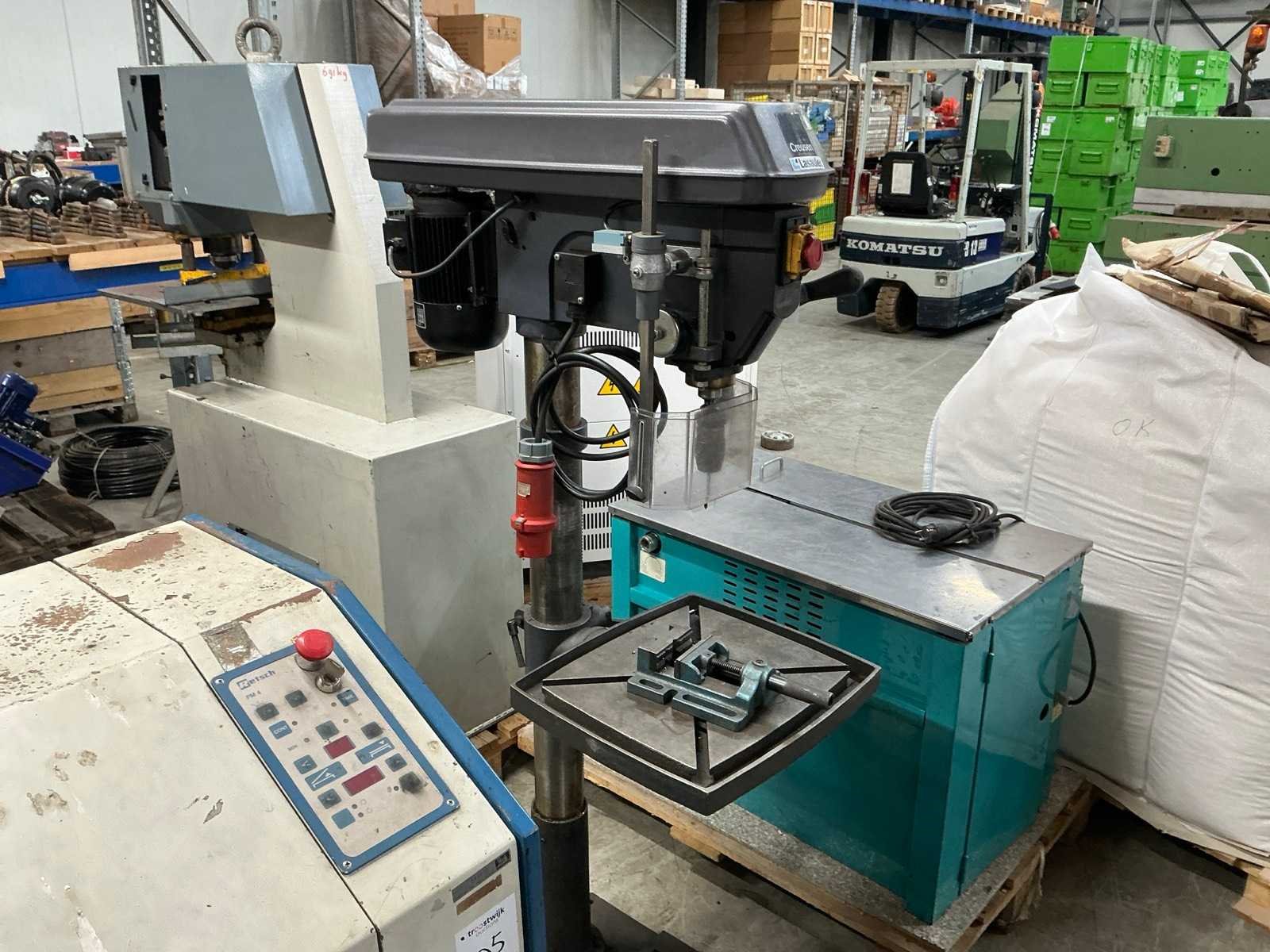 Inclusief 1 machineklem Nee Merk: Creusen Type: KB832 Aantal snelheden: 12 Spindelsnelheid van n =: 190rpm Spindelsnelheid tot n =: 2000rpm Uitlading: 250mm Tafel afmeting l: 400mm Tafel afmeting b: 350mm Motorvermogen (kW): 1.1kW Aansluiting: 400V Afmeting l: 900mm Afmeting b: 650mm Afmeting h: 1720mm