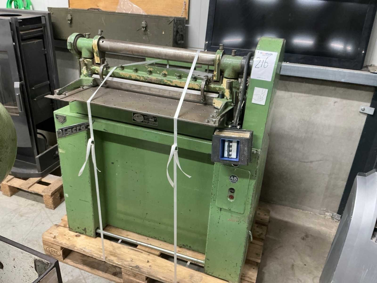 Nee Merk: Di-Acro Type: Power shear 24 Serienummer: 1-1049 Snijlengte: 600mm Achteraanslag handbediend: true Achteraanslag bereik: 500mm Aansluiting: 400V Afmeting l: 1050mm Afmeting b: 1000mm Afmeting h: 1220mm