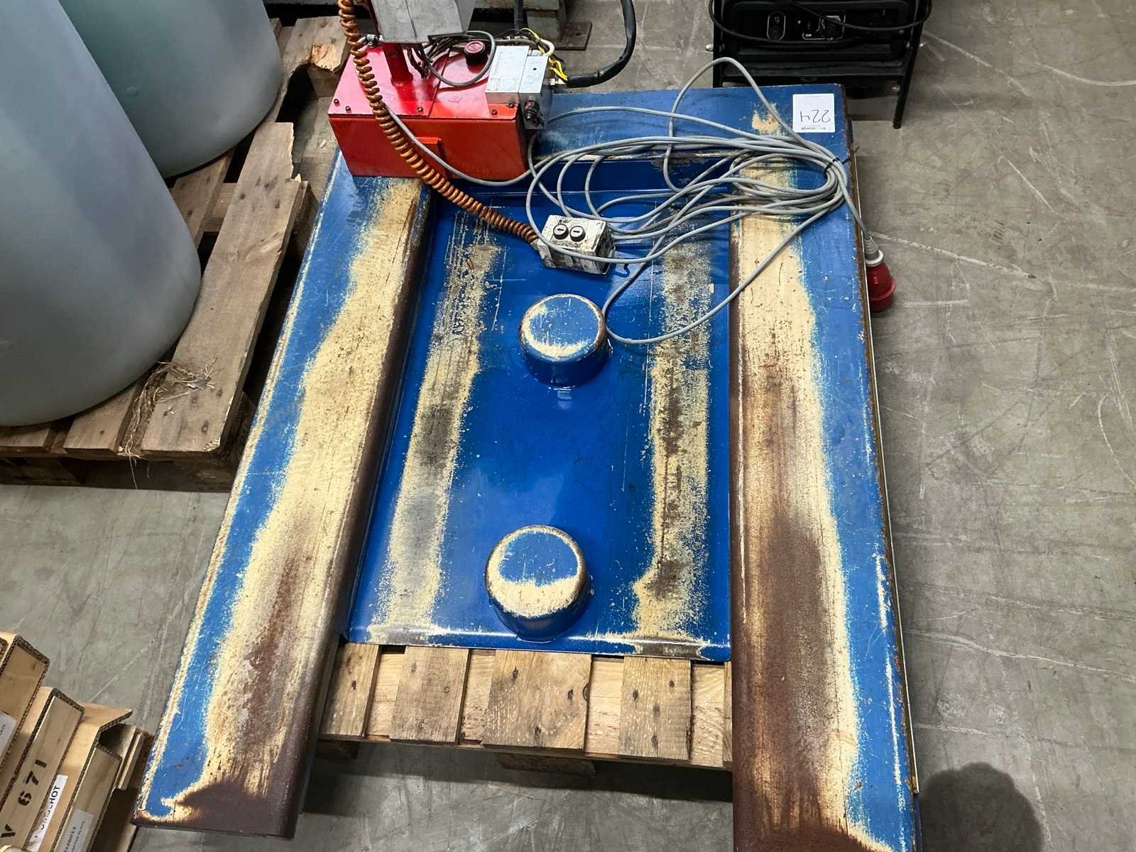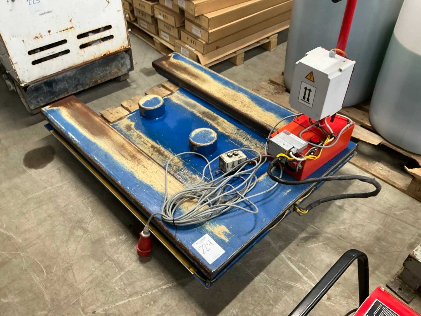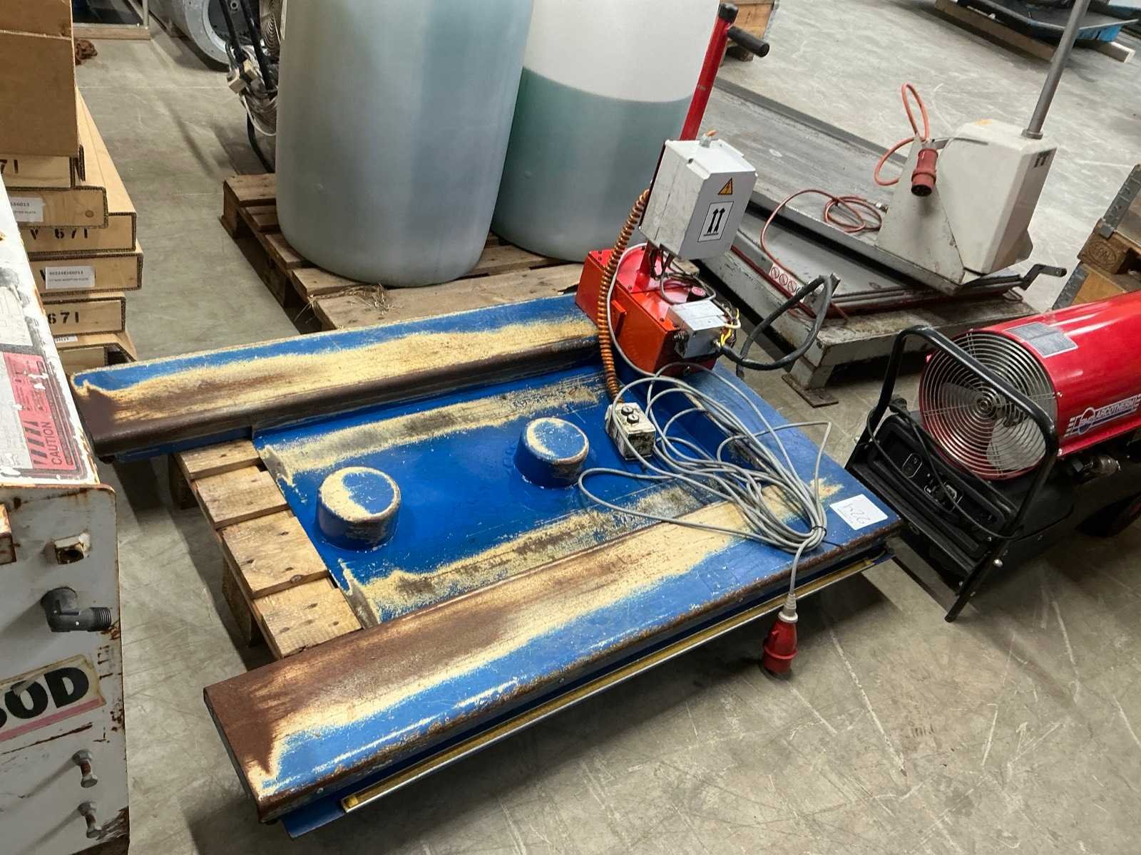 Capaciteit en max hoogte onbekend, 400Volt, afmeting plateau circa 1400x1000mm. Nee