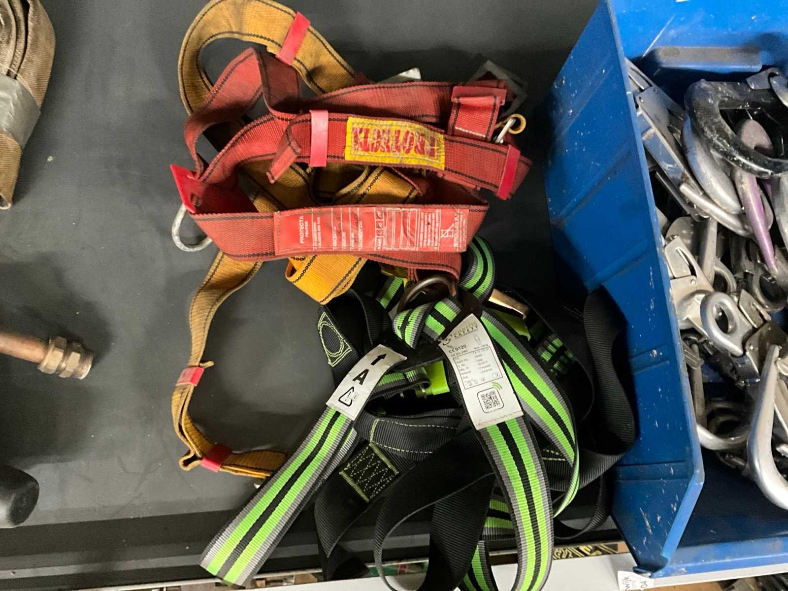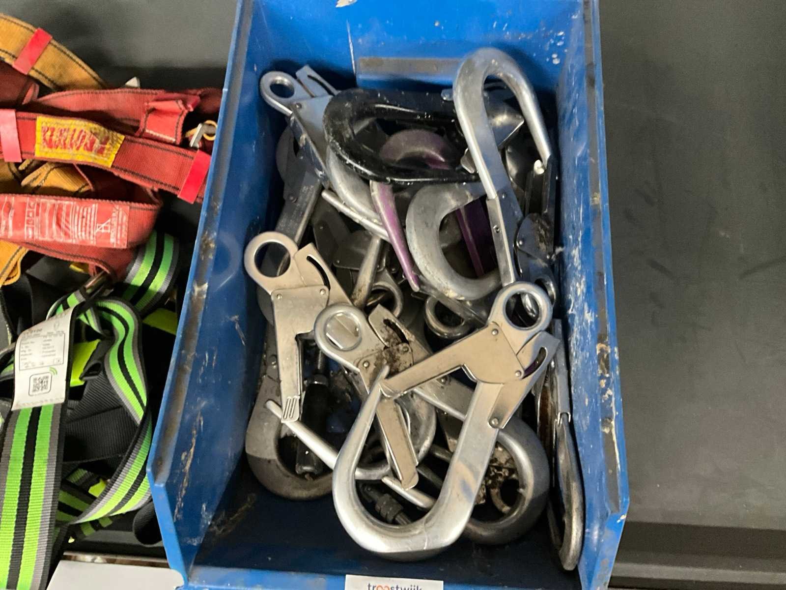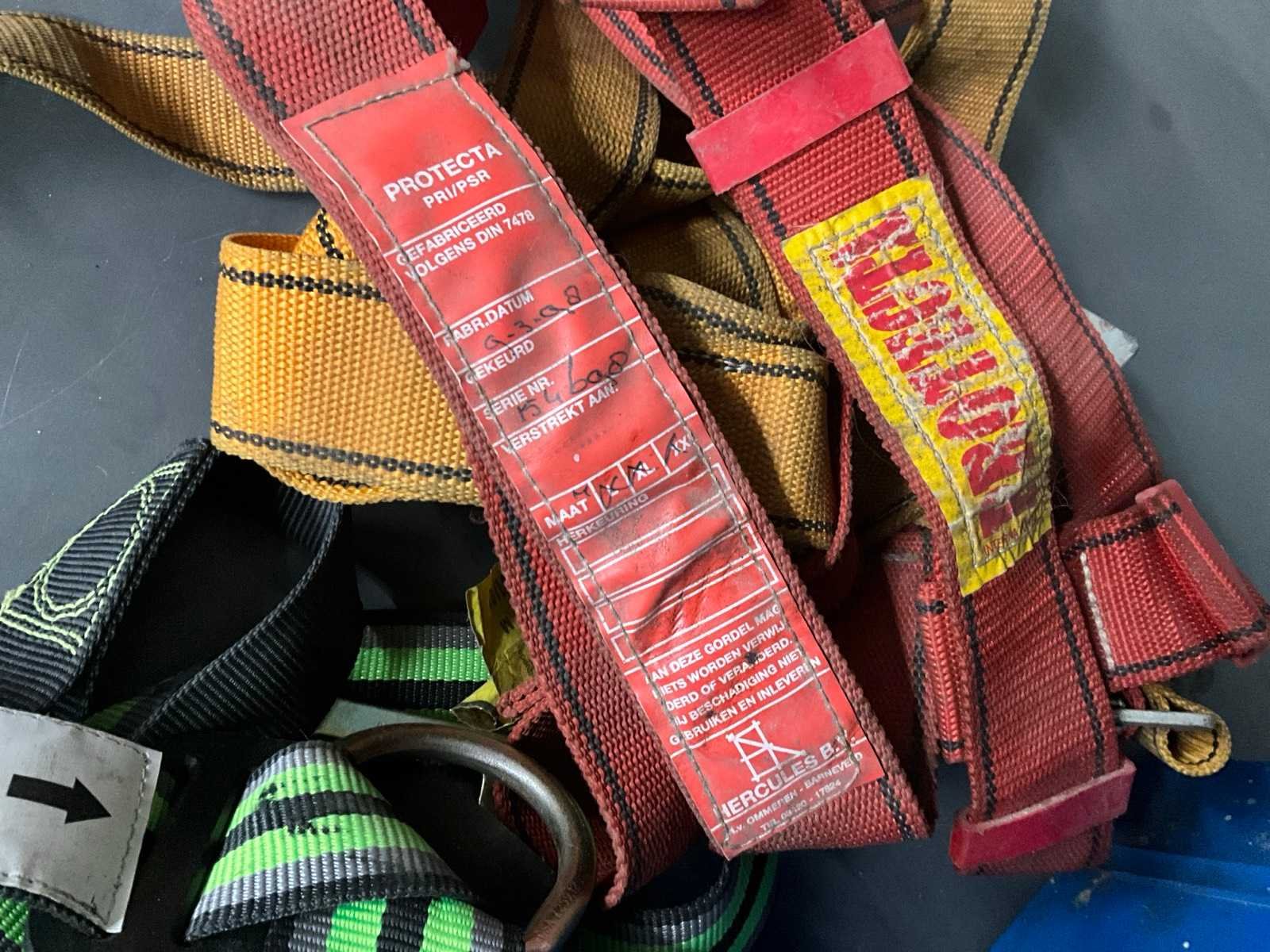 Bestaande uit: 3x harnas, diverse afmetingen steigerhaken. Nee