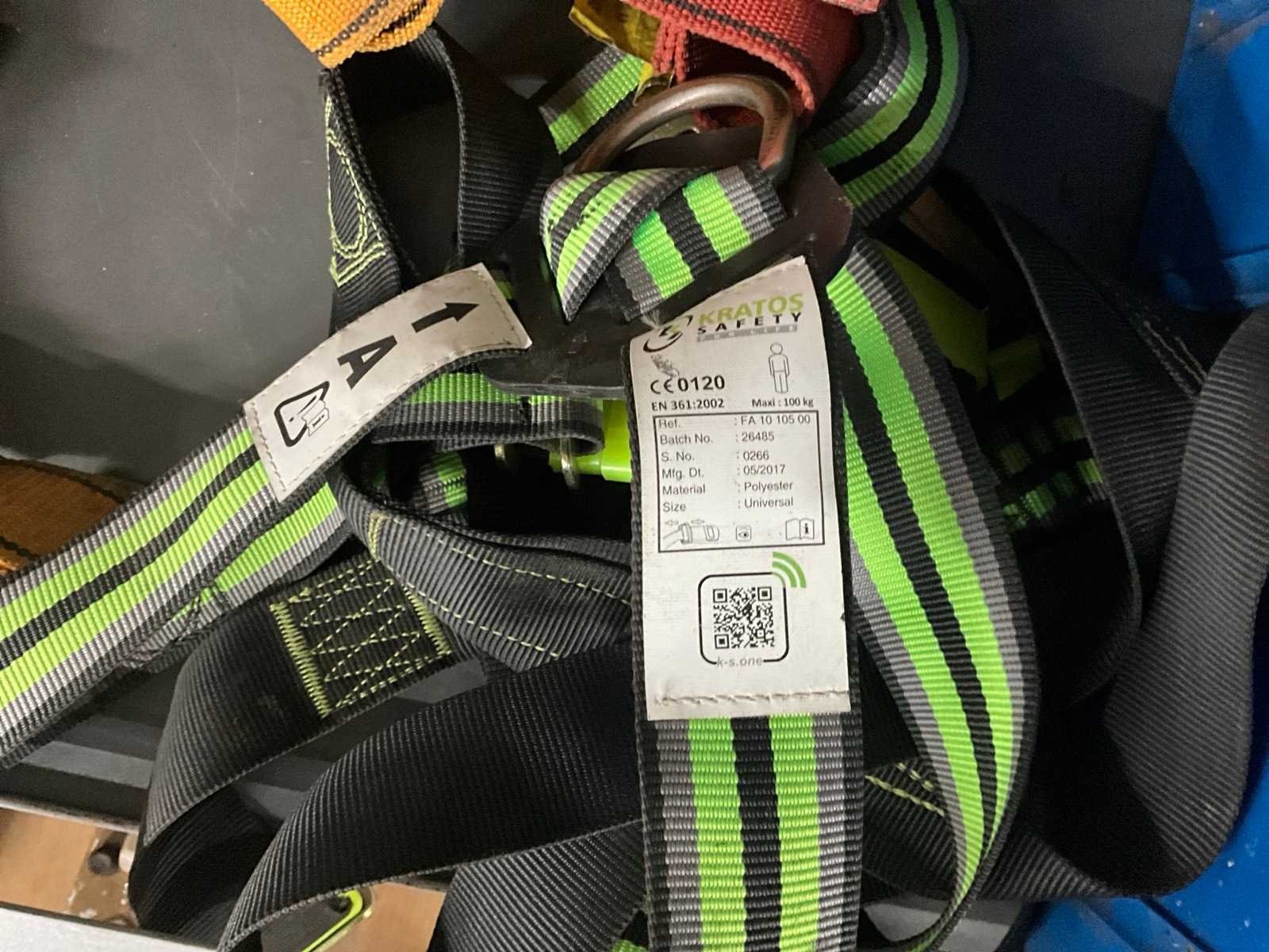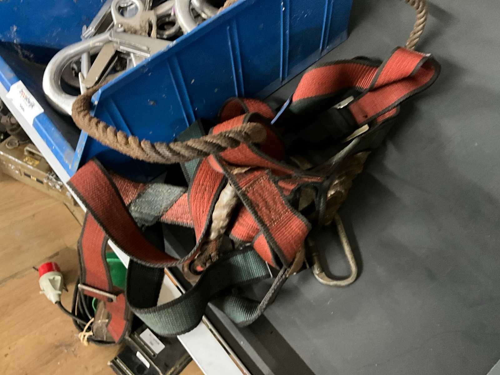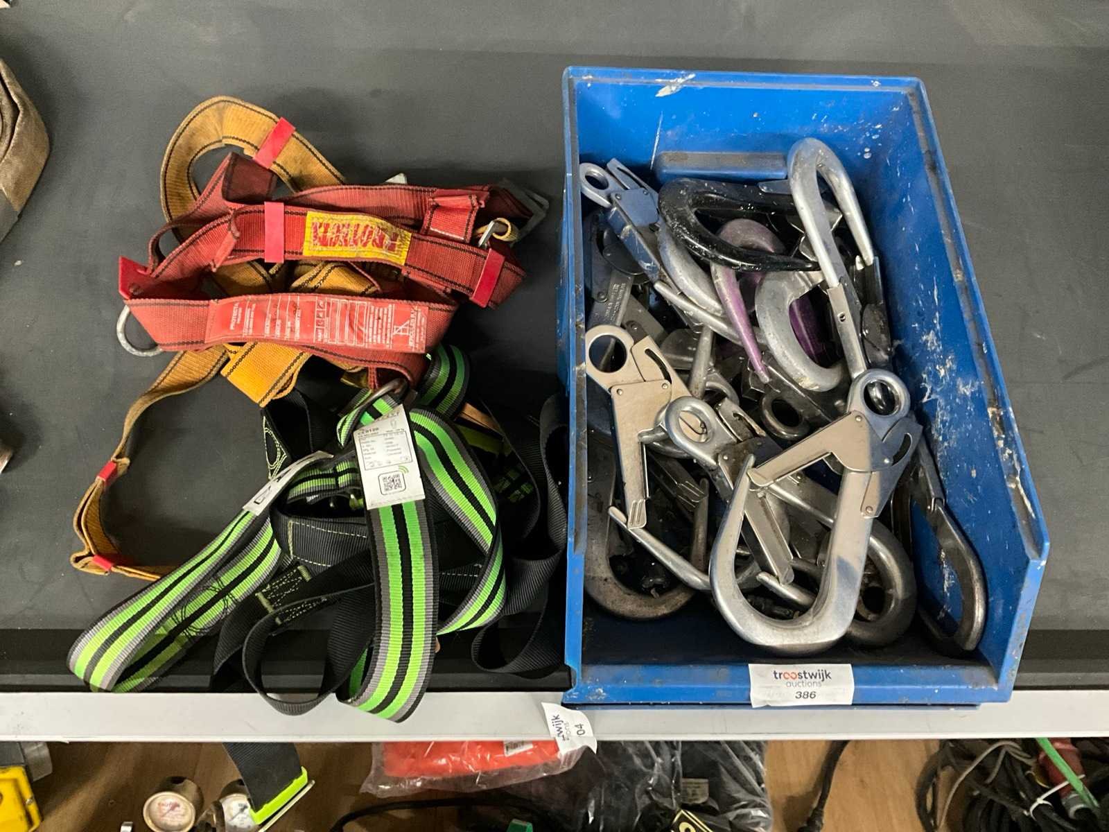 Bestaande uit: 3x harnas, diverse afmetingen steigerhaken. Nee