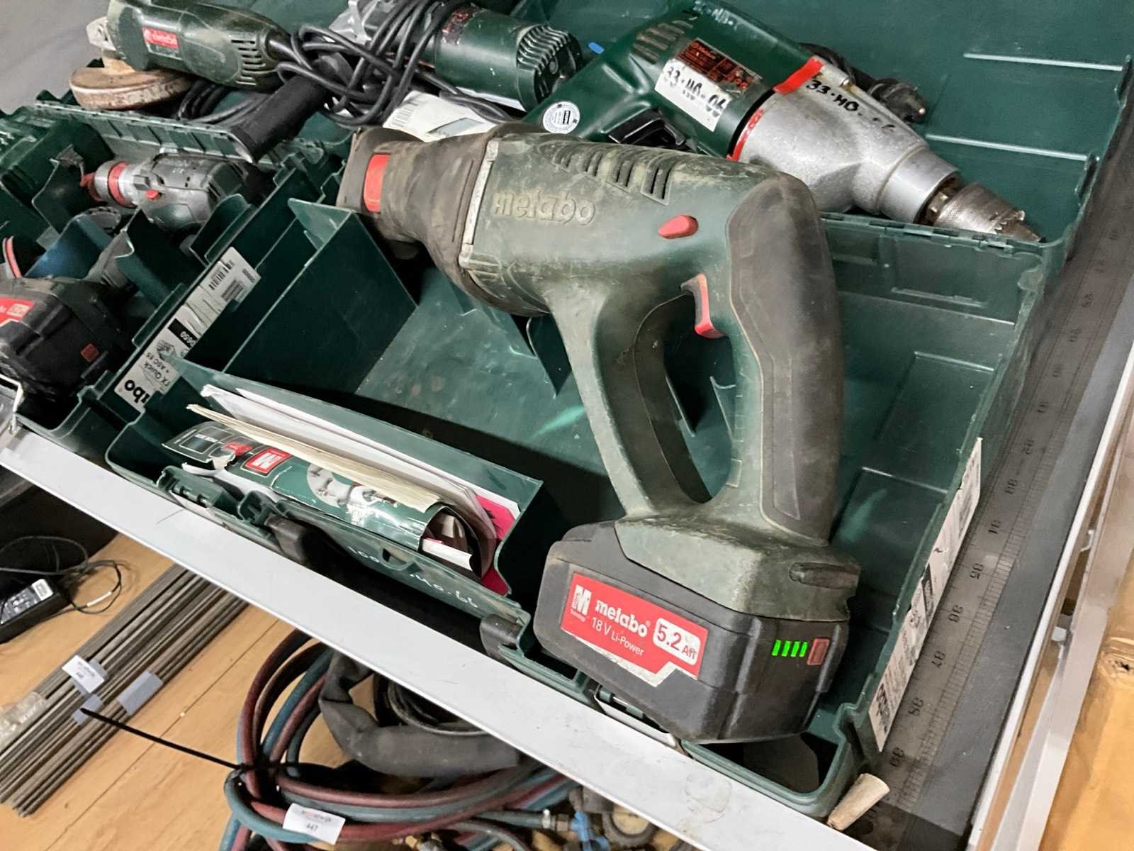 Bestaande uit: 2x haakse slijpmachine, boormachine, reciprozaag en schroefboormachine Nee Merk: Metabo Aansluiting: 230V
