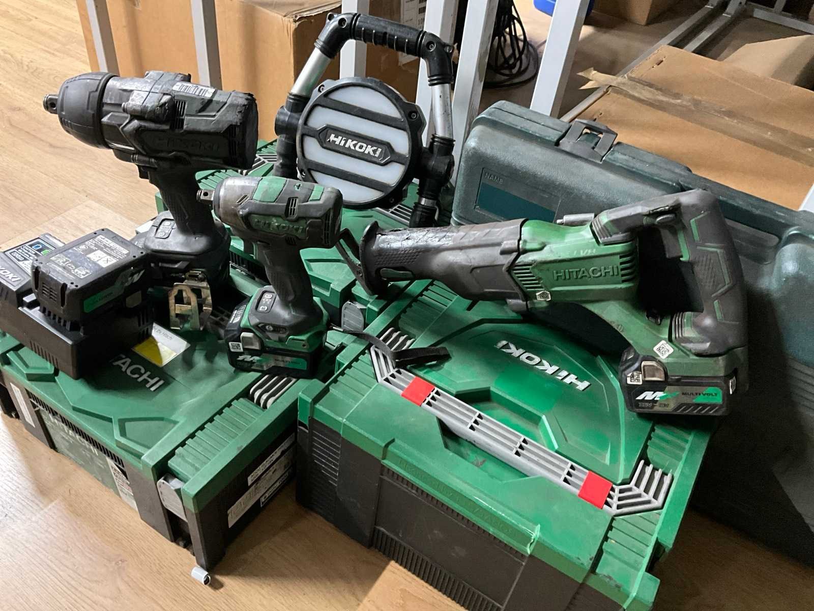 Bestaande uit: reciprozaag, 2x slagmoersleutel, bouwlamp Nee Merk: Hikoki Accu lader: true Aantal accu's: 4