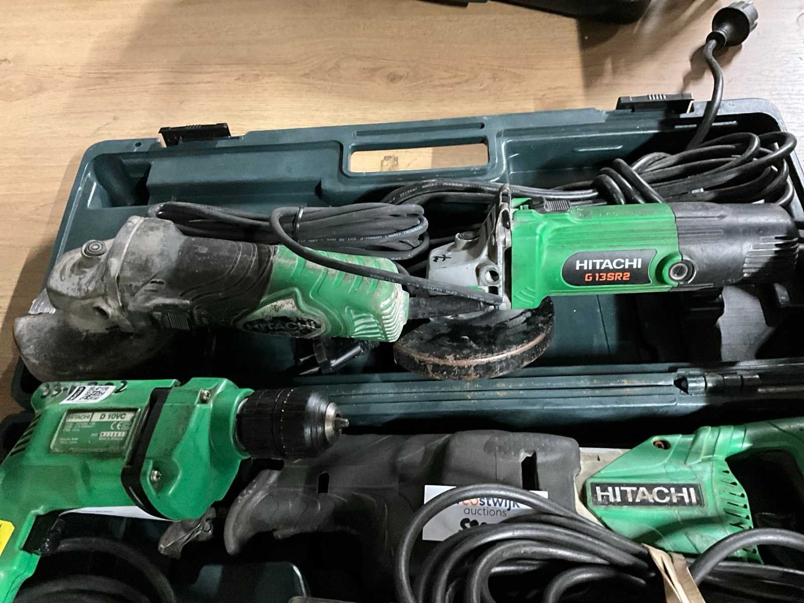 Bestaande uit: 2x haakse slijpmachine, rechte slijpmachine, reciprozaag, boormachine, reciprozaag. Nee Merk: Hitachi Aansluiting: 230V