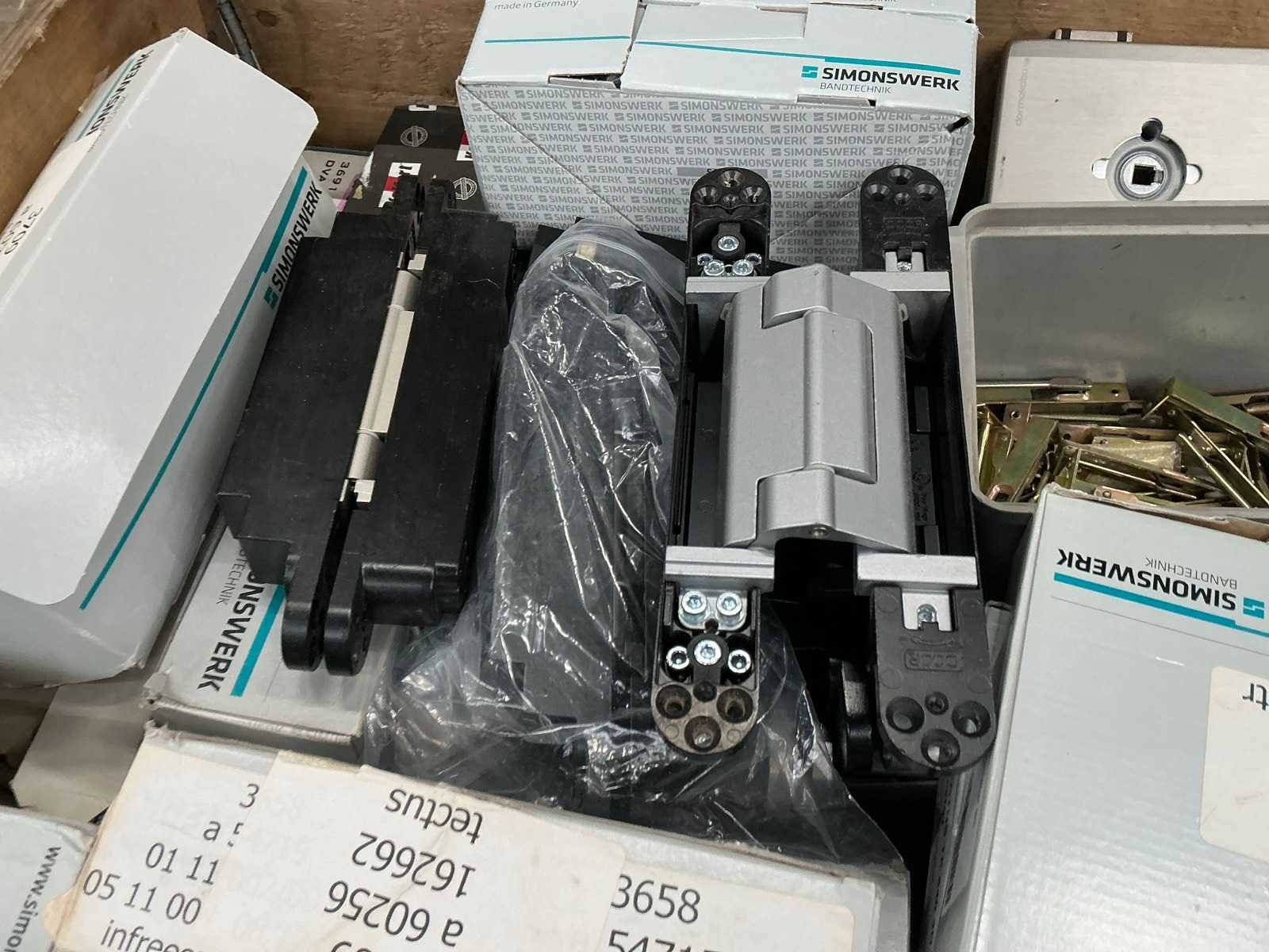 Partij saloondeur scharnieren, bevestigingsmiddelen en divers