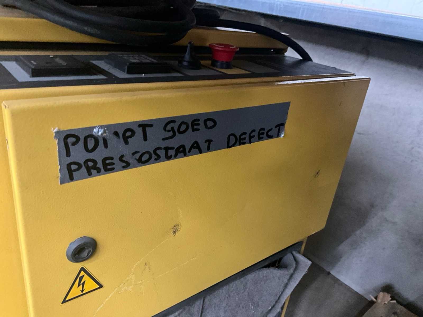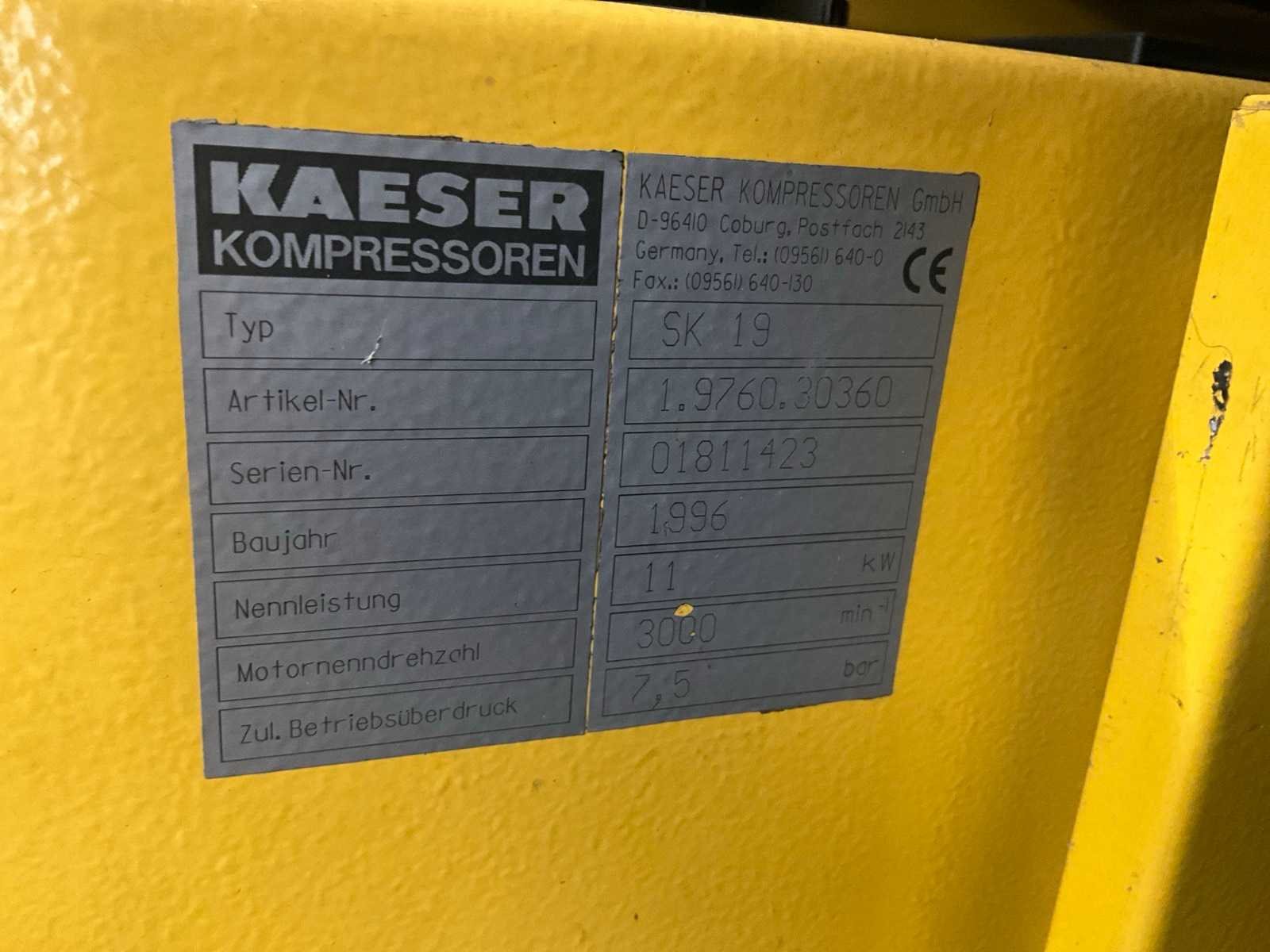 Heeft een storing. Nee Merk: Kaeser Type: SK19 Bouwjaar: 1996 Serienummer: 01811423 Capaciteit.: 7.5bar Luchtstroom: 3000l/min Vermogen: 11kW Totale afmeting L: 750mm Totale afmeting Breedte: 800mm Totale afmeting Hoogte: 1000mm