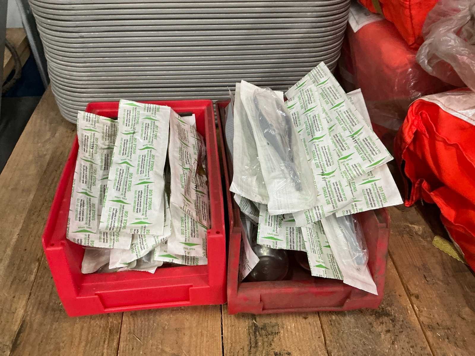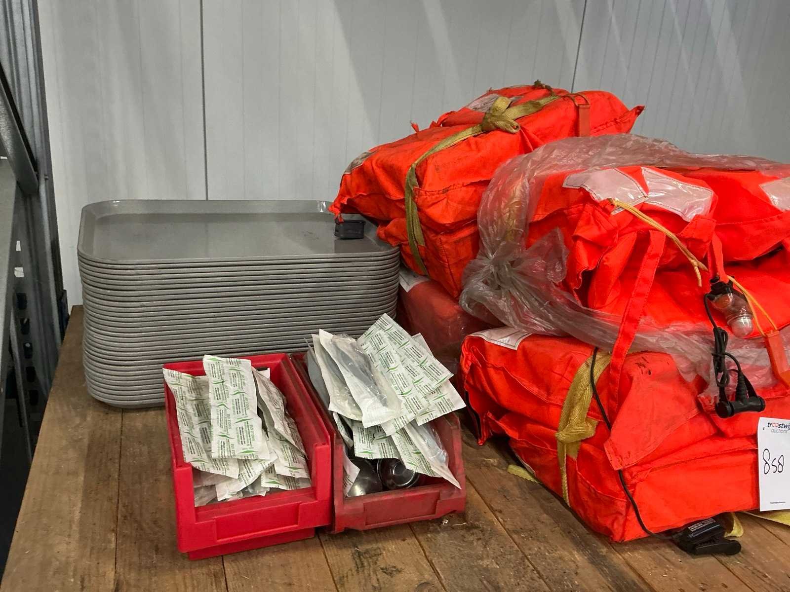 Bestaande uit 28 dienbladen, partij pincetten, reddingsvesten Nee