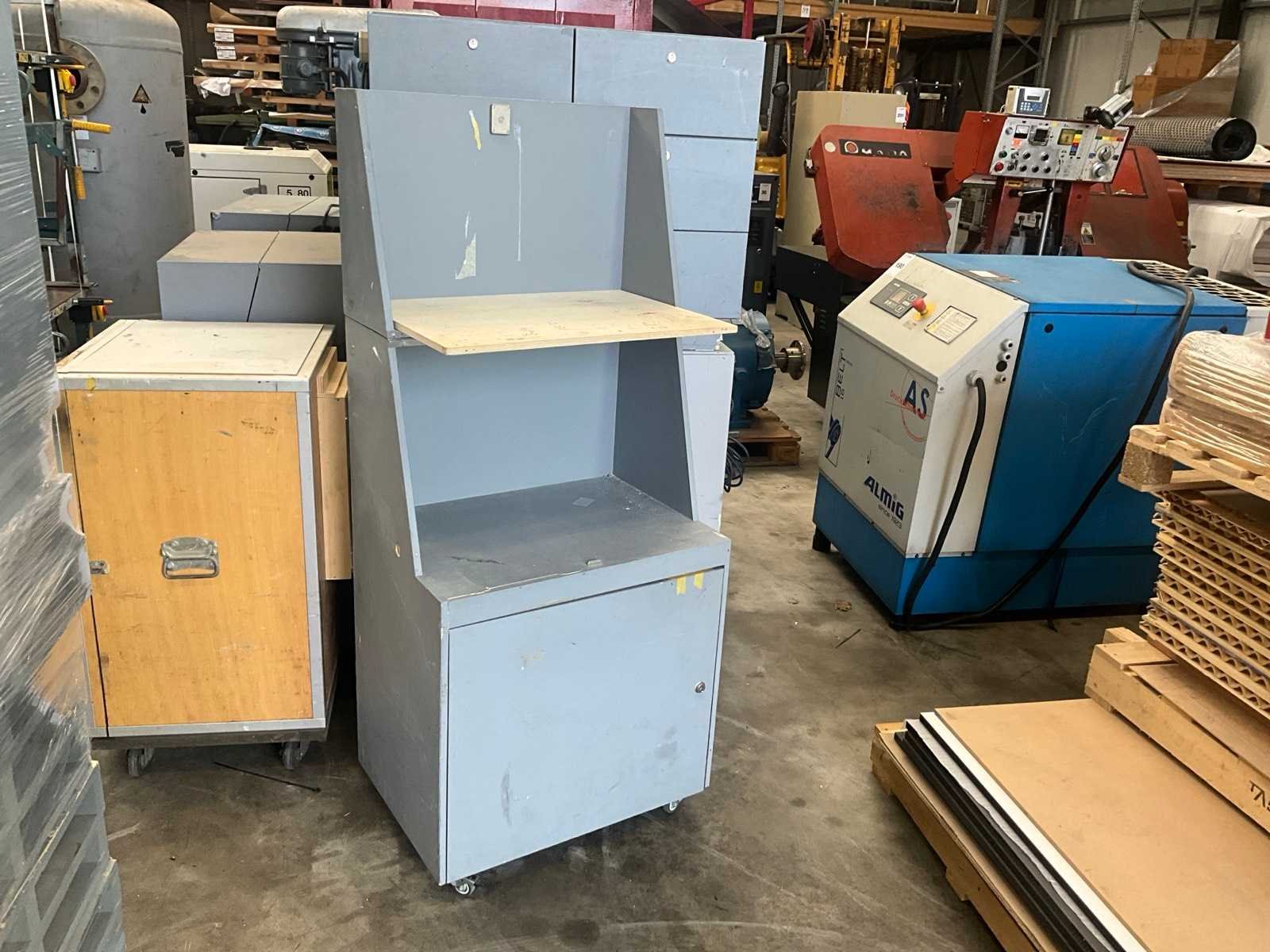 Bestaande uit: 4x inklapbare mobiele desk 500x700x1170mm, 4x lade opbergdesk 530x1100x900mm, 1x mobiele kast 550x600x1020mm Nee