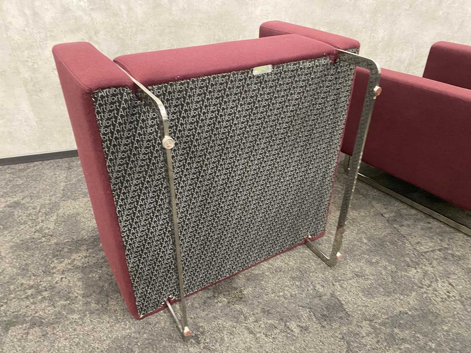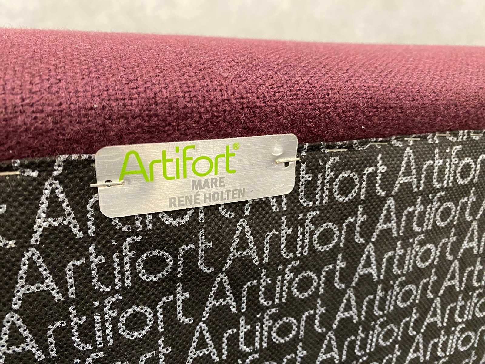 Afm. ca. hxbxd 75x87x83 cm. -- design van René Holten Nee Merk: 3x Artifort Mare Kleur: paars Zithoogte: 41cm Materiaal: metaal, textiel