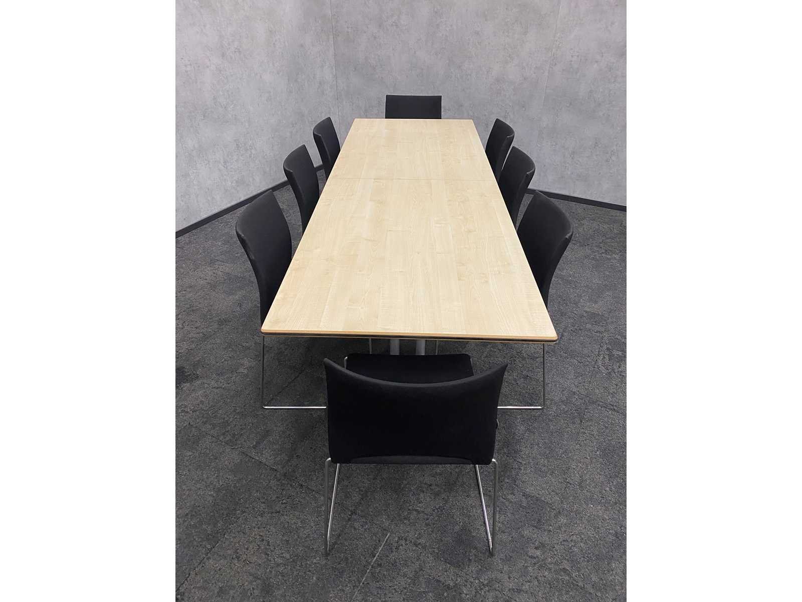 Kavel bestaande uit 1x Wilkahn Confair mobiele klaptafel. Afm. ca. hxbxd 73x260x190 cm. ----- 8x Connection nestelbare conferentiestoel Nee Merk: Wilkahn/ Connection