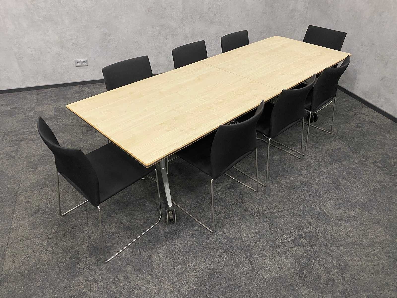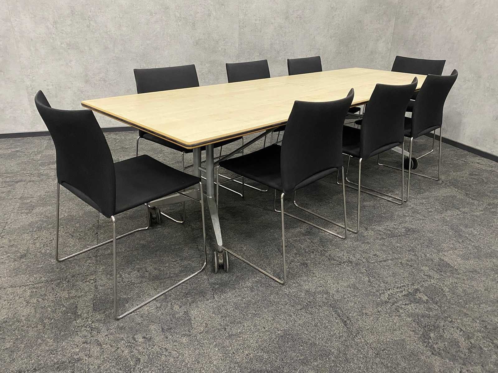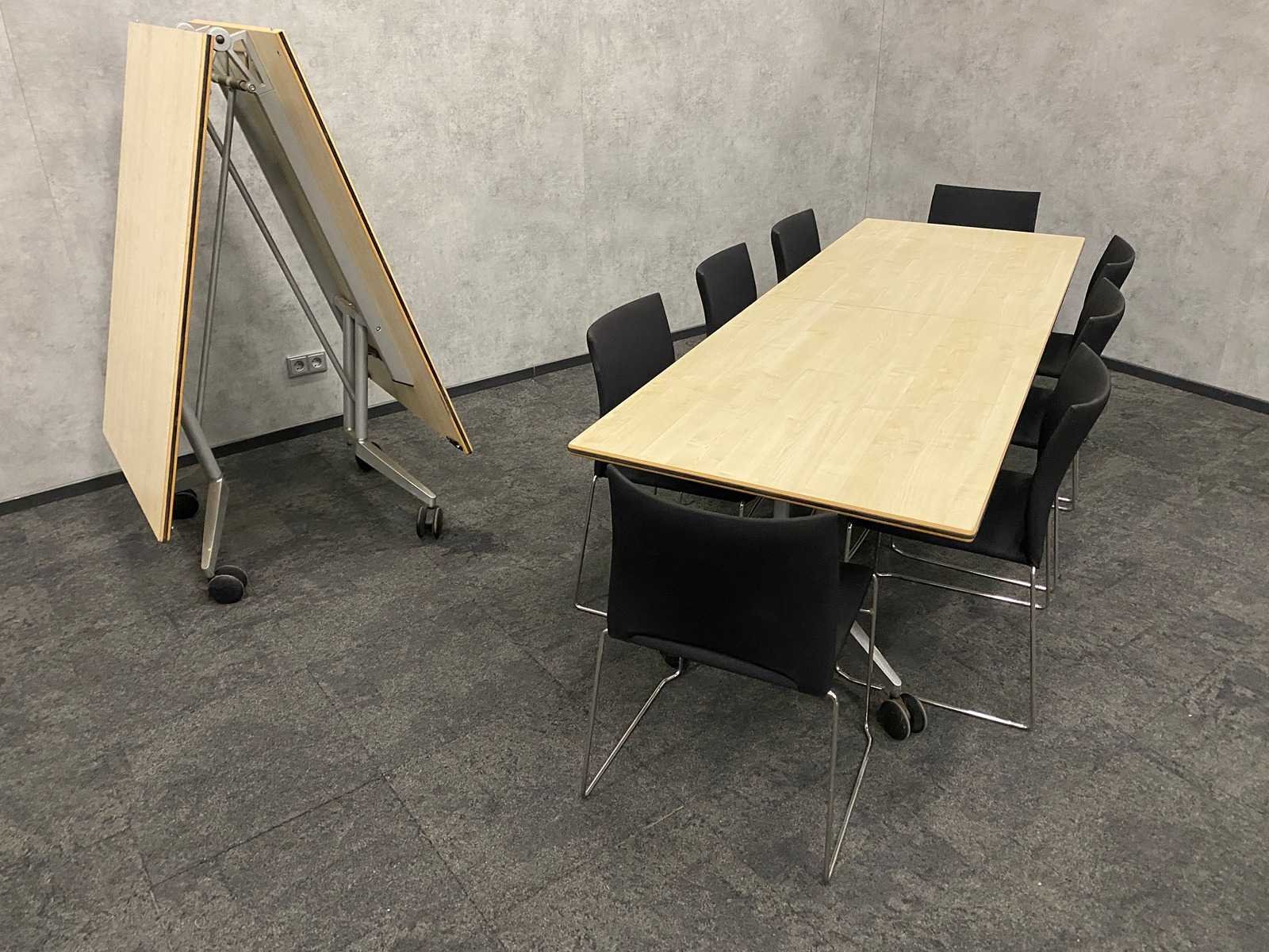 Kavel bestaande uit 1x Wilkahn Confair mobiele klaptafel. Afm. ca. hxbxd 73x260x190 cm. ----- 8x Connection nestelbare conferentiestoel Nee Merk: Wilkahn/ Connection