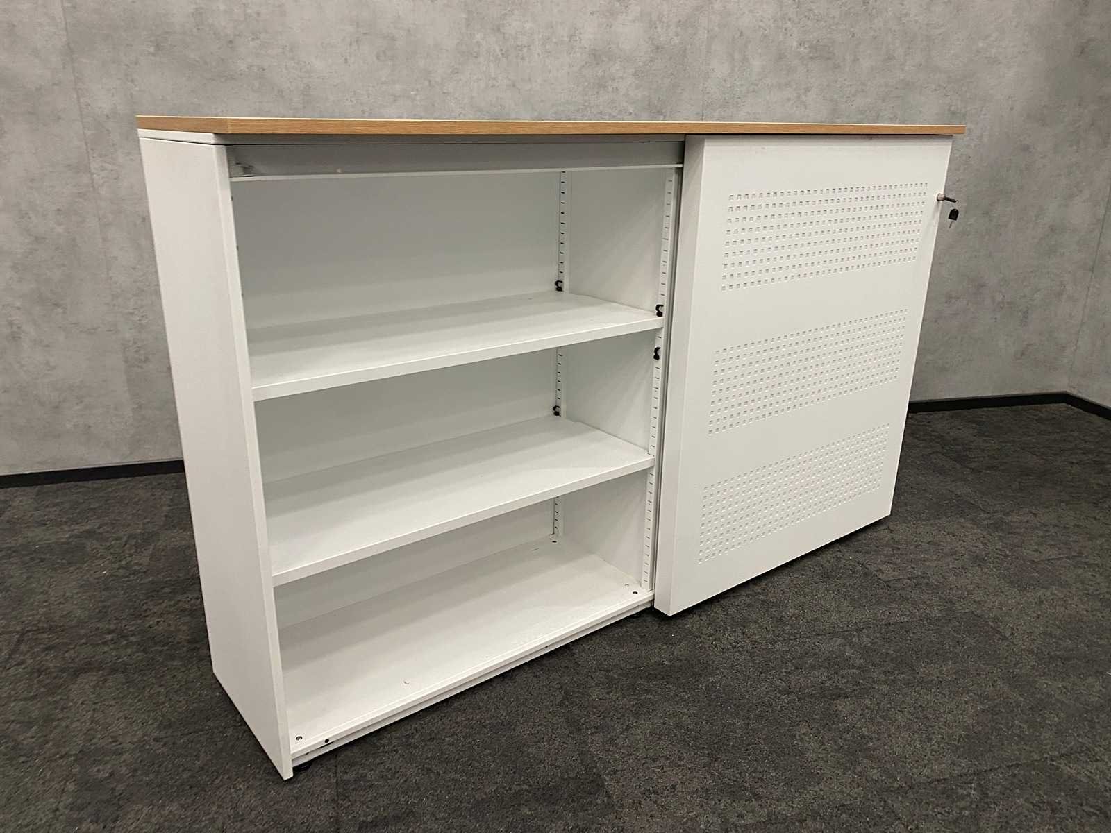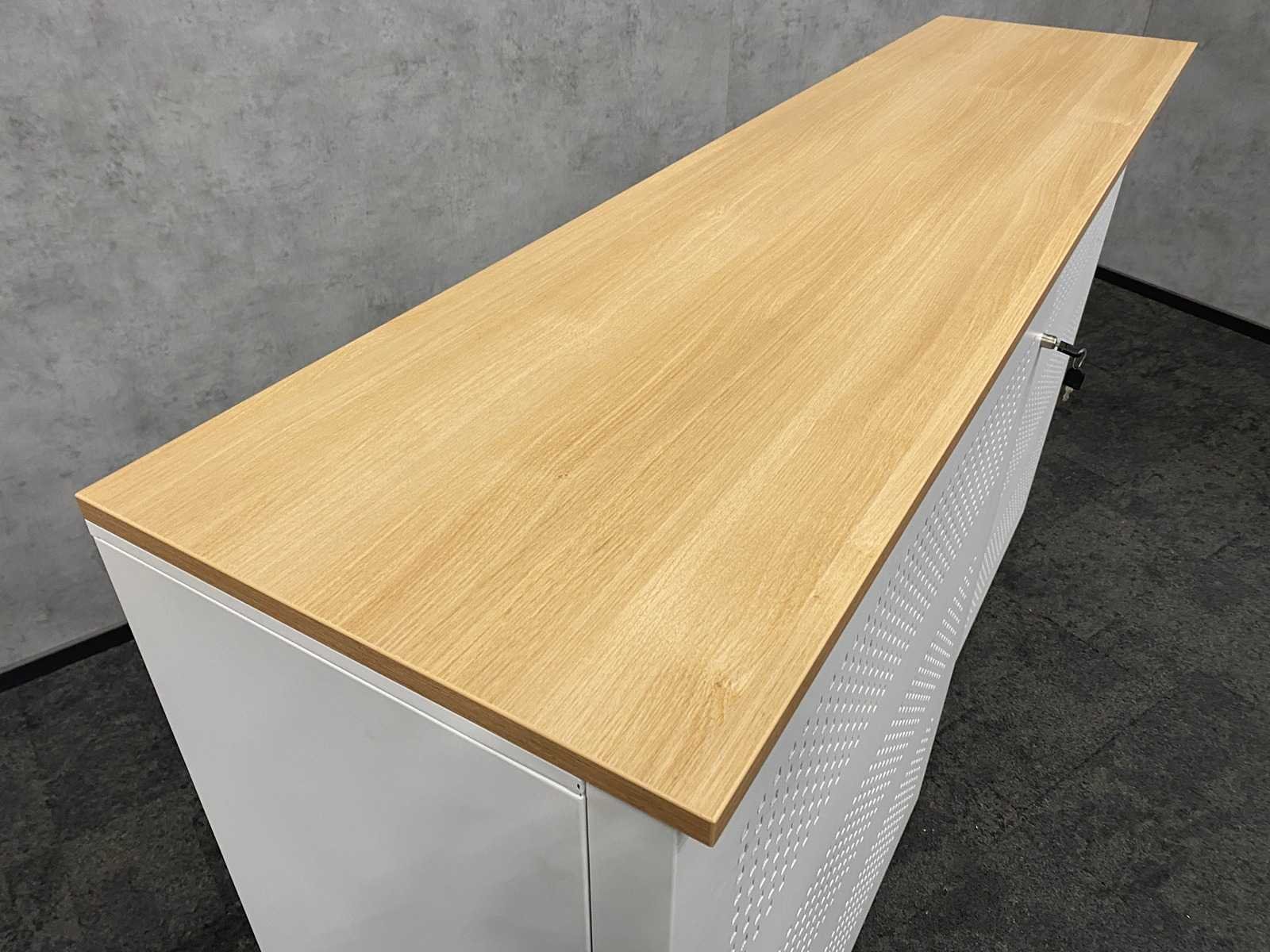 Met sleutel, v.v. 4 verstelbare legborden, houtlook melamine topblad Nee Kleur: wit, eiken Breedte: 200cm Hoogte: 120cm Diepte: 50cm Materiaal: metaal, melamine