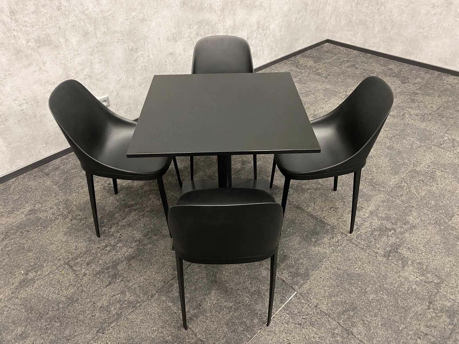 Kavel bestaande uit 1x Gispen tafel en 4x Alias Elle stoel Nee Merk: Gispen/ Alias Lengte: 80cm Breedte: 80cm Hoogte: 76cm