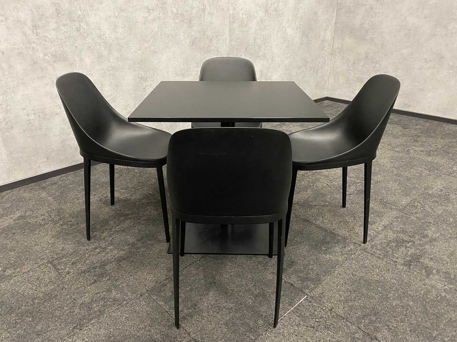 Kavel bestaande uit 1x Gispen tafel en 4x Alias Elle stoel Nee Merk: Gispen/ Alias Lengte: 80cm Breedte: 80cm Hoogte: 76cm