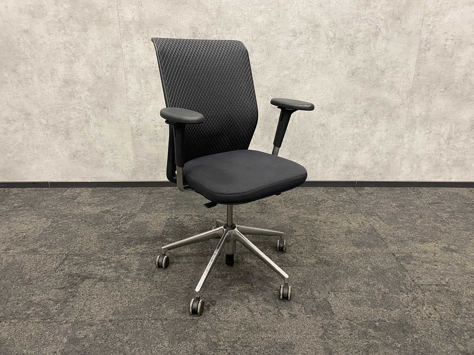 V.v. 4D verstelbare armleggers, zithoogte en zitdiepte instelbaar, actief zitten, chroom 5-teens voetenkruis, verstelbare lendensteun, zwart gestoffeerd zitvlak Nee Merk: Vitra ID Kleur: zwart, chroom