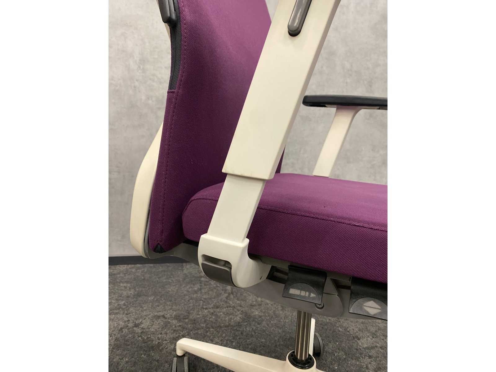 V.v. 4D verstelbare armleggers, zithoogte en zitdiepte verstelbaar, kantelmechanisme rugleuning , wit 5-teens voetenkruis, paarse stoffering, verstelbare lendensteun, gewichtsregeling, Nee Merk: Sedus