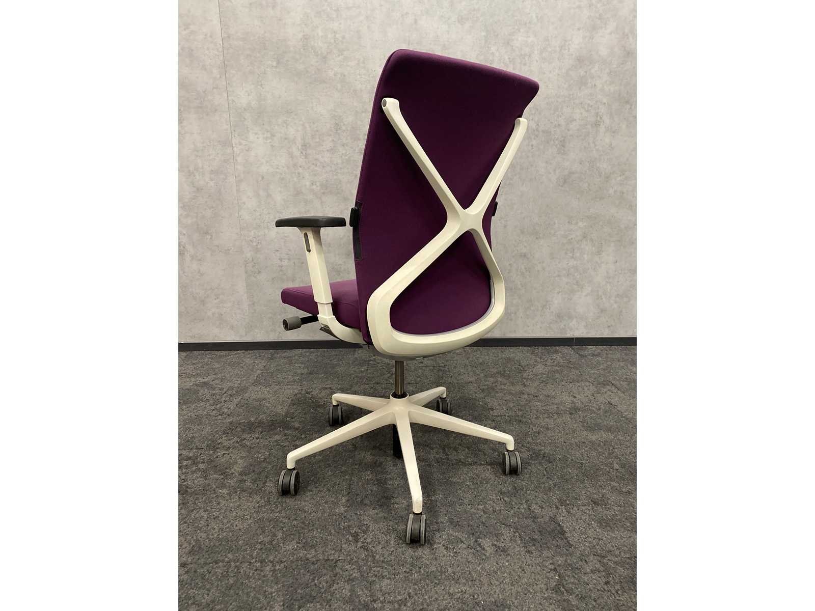 V.v. 4D verstelbare armleggers, zithoogte en zitdiepte verstelbaar, kantelmechanisme rugleuning , wit 5-teens voetenkruis, paarse stoffering, verstelbare lendensteun, gewichtsregeling, Nee Merk: Sedus