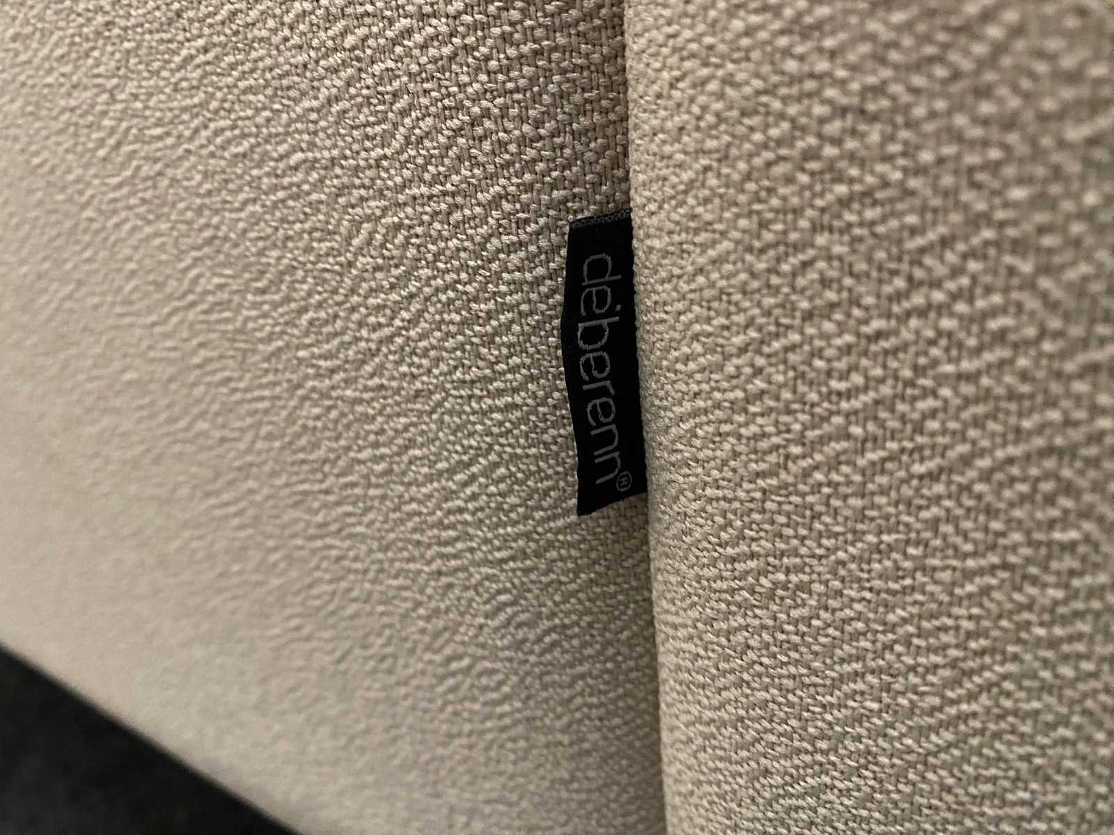 Nee Merk: 2x DeBerenn Kleur: beige, rood Breedte: 140cm Hoogte: 150cm Zithoogte: 44cm Diepte: 82cm Materiaal: textiel