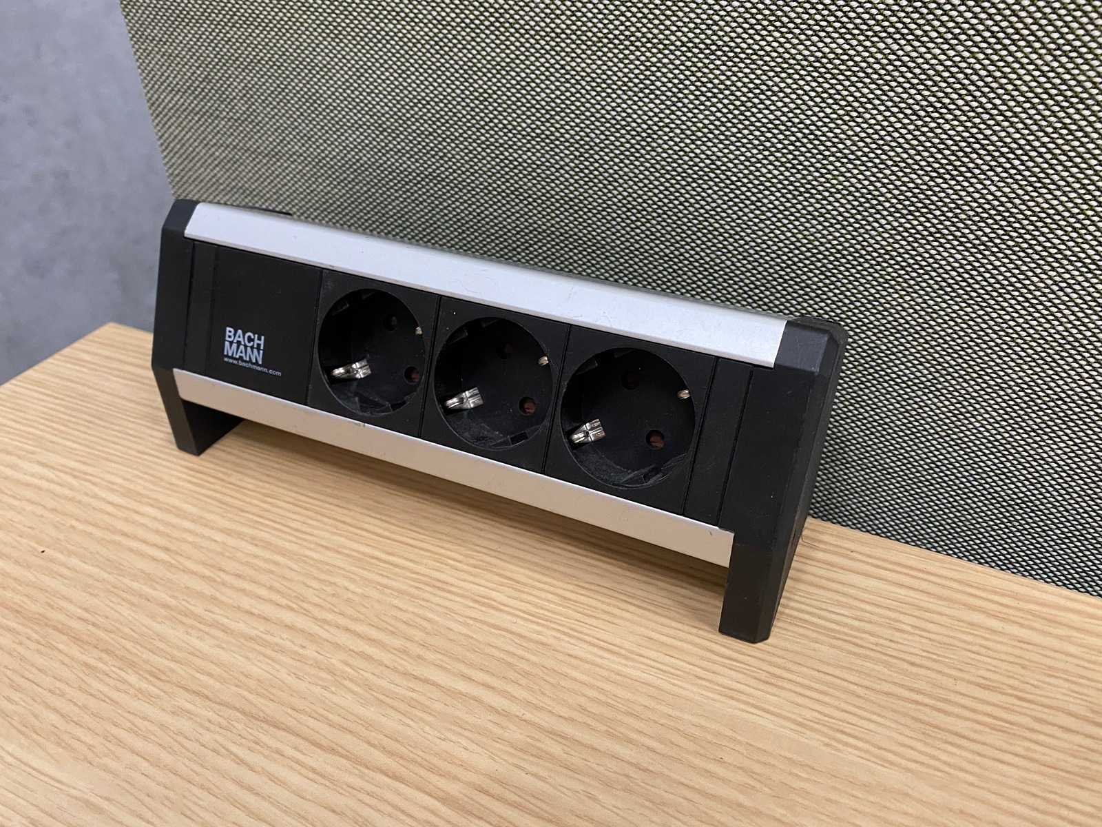 Kavel bestaande uit: 1x Steelcase duo zit-zit slinger bureau v.v. groen akoestische scheidingswand, 2x Bachmann opzet stekkerblok (3x230V), handslinger, draadgoot, zwart stalen onderstel, eikenkleurig melamine werkbladen. Afm. ca. hoogte 62-90 cm. bxd 160x80 cm. LET OP transportafmetingen ca. hxbxd 65x160x170 cm. ----- 2x Interstuhl Movy ergonomische bureaustoel v.v. 3D verstelbare armleggers, zithoogte en zitdiepte instelbaar, kantelmechanisme rugleuning, verstelbare lendensteun, gewichtsregeling, netweave rugbekleding, zwart gestoffeerd zitvlak Nee Merk: Steelcase/ Interstuhl Slingerbureau: true