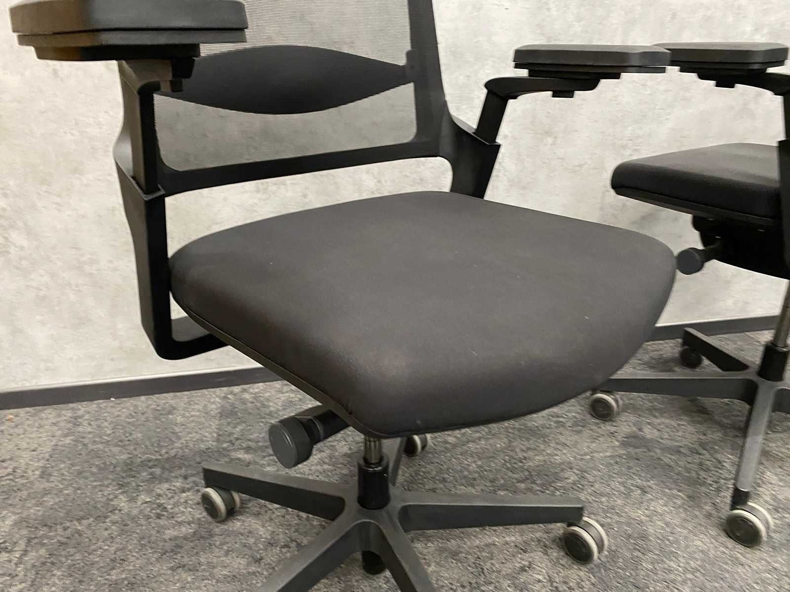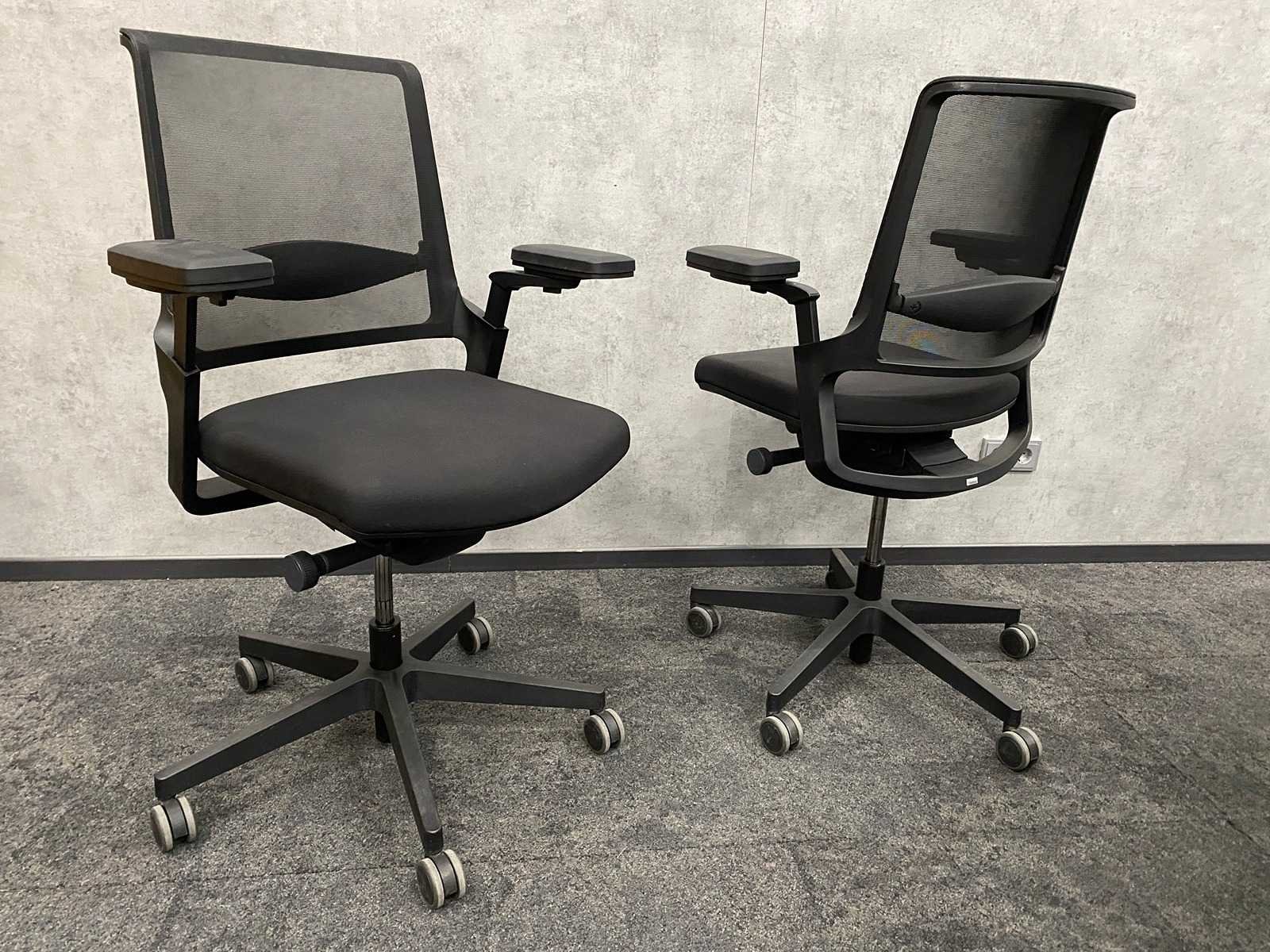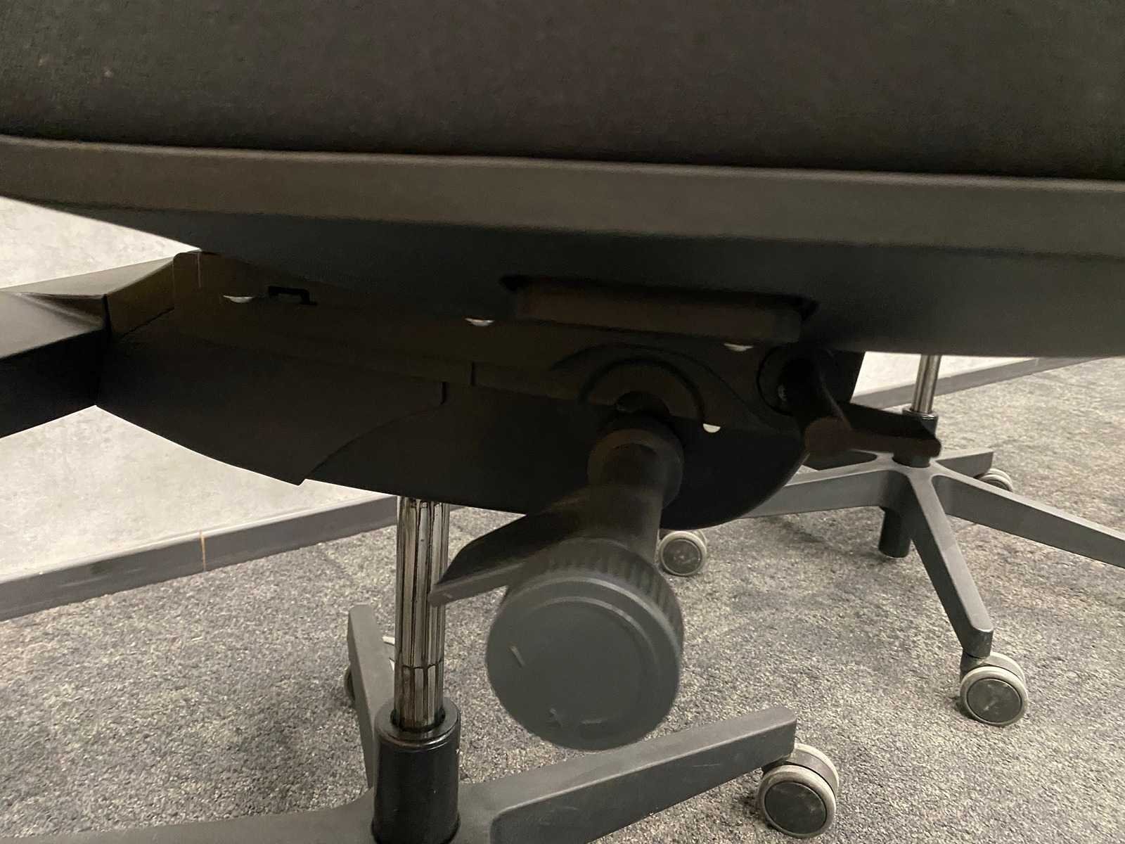 Kavel bestaande uit: 1x Steelcase duo zit-zit slinger bureau v.v. groen akoestische scheidingswand, 2x Bachmann opzet stekkerblok (3x230V), handslinger, draadgoot, zwart stalen onderstel, eikenkleurig melamine werkbladen. Afm. ca. hoogte 62-90 cm. bxd 160x80 cm. LET OP transportafmetingen ca. hxbxd 65x160x170 cm. ----- 2x Interstuhl Movy ergonomische bureaustoel v.v. 3D verstelbare armleggers, zithoogte en zitdiepte instelbaar, kantelmechanisme rugleuning, verstelbare lendensteun, gewichtsregeling, netweave rugbekleding, zwart gestoffeerd zitvlak Nee Merk: Steelcase/ Interstuhl Slingerbureau: true