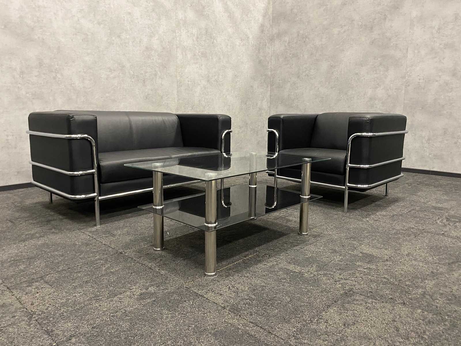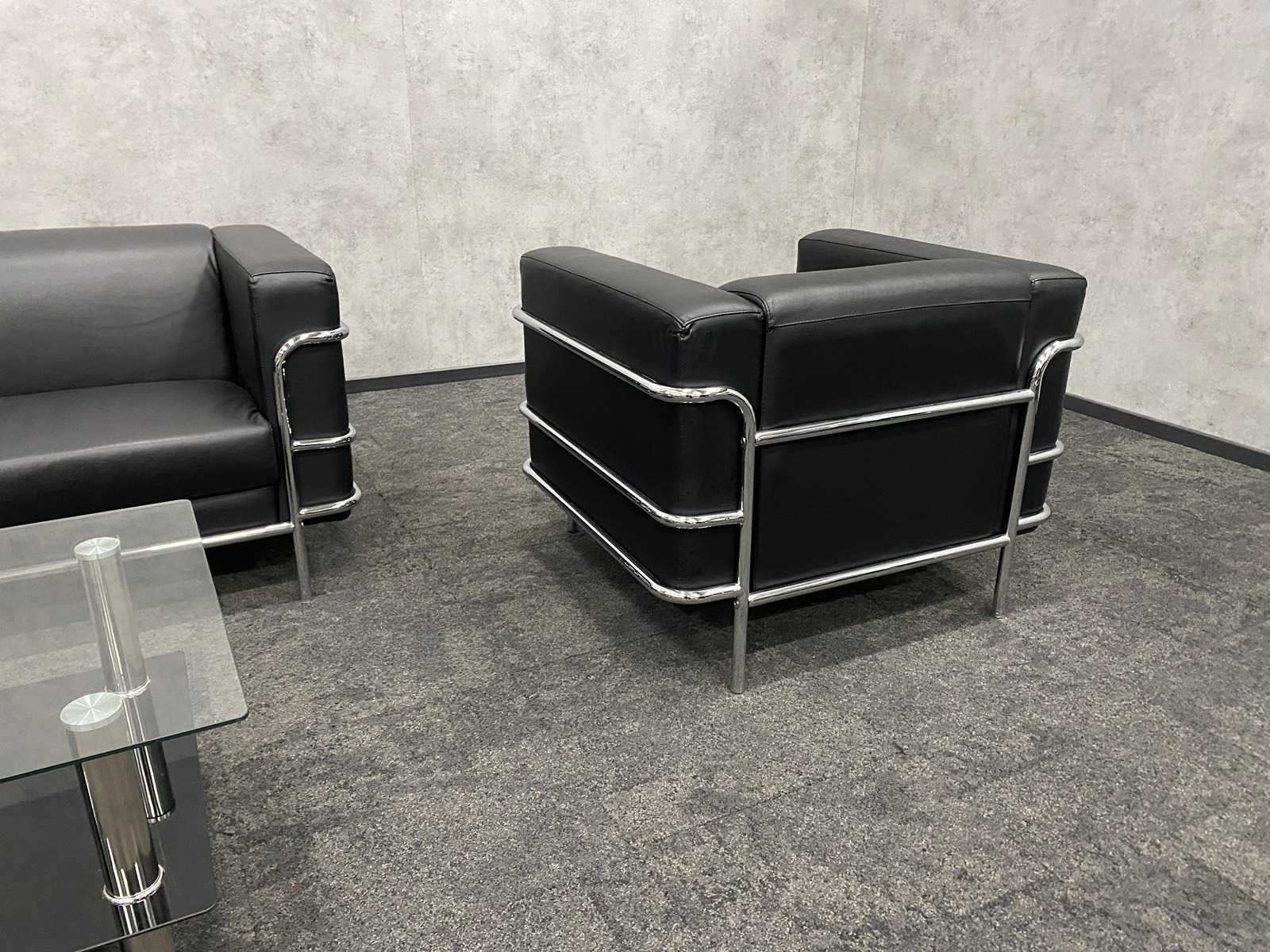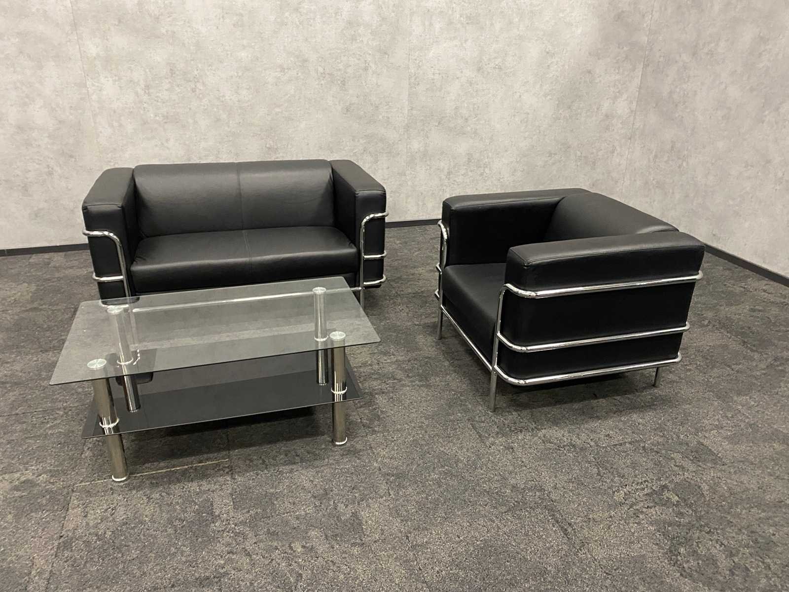 Afm. sofa ca. hxbxd 70x135x80 cm. -- Afm. fauteuil ca. 70x93x80 cm. -- Afm. tafel ca. 45x100x60 cm. Nee Kleur: chroom, zwart