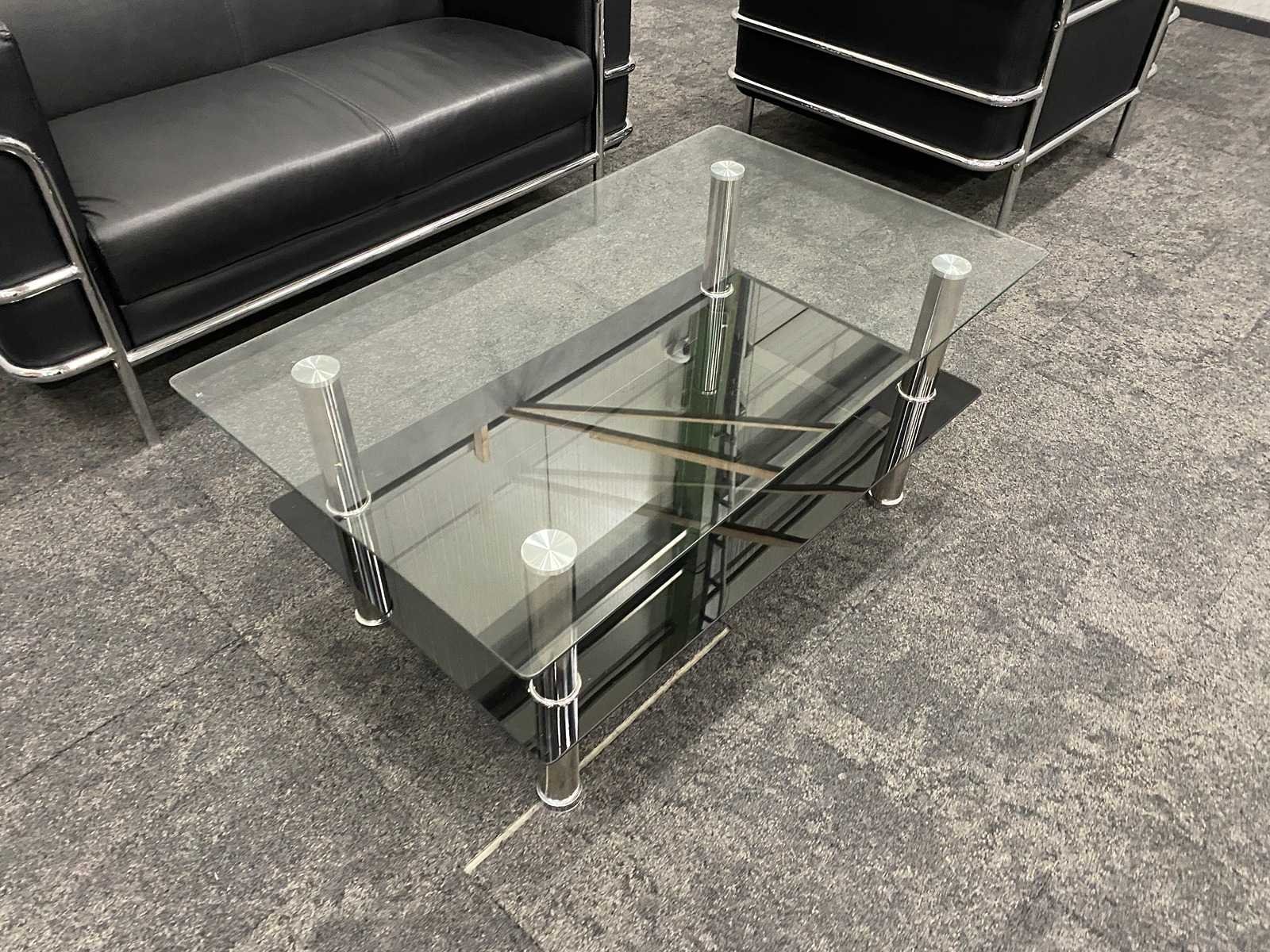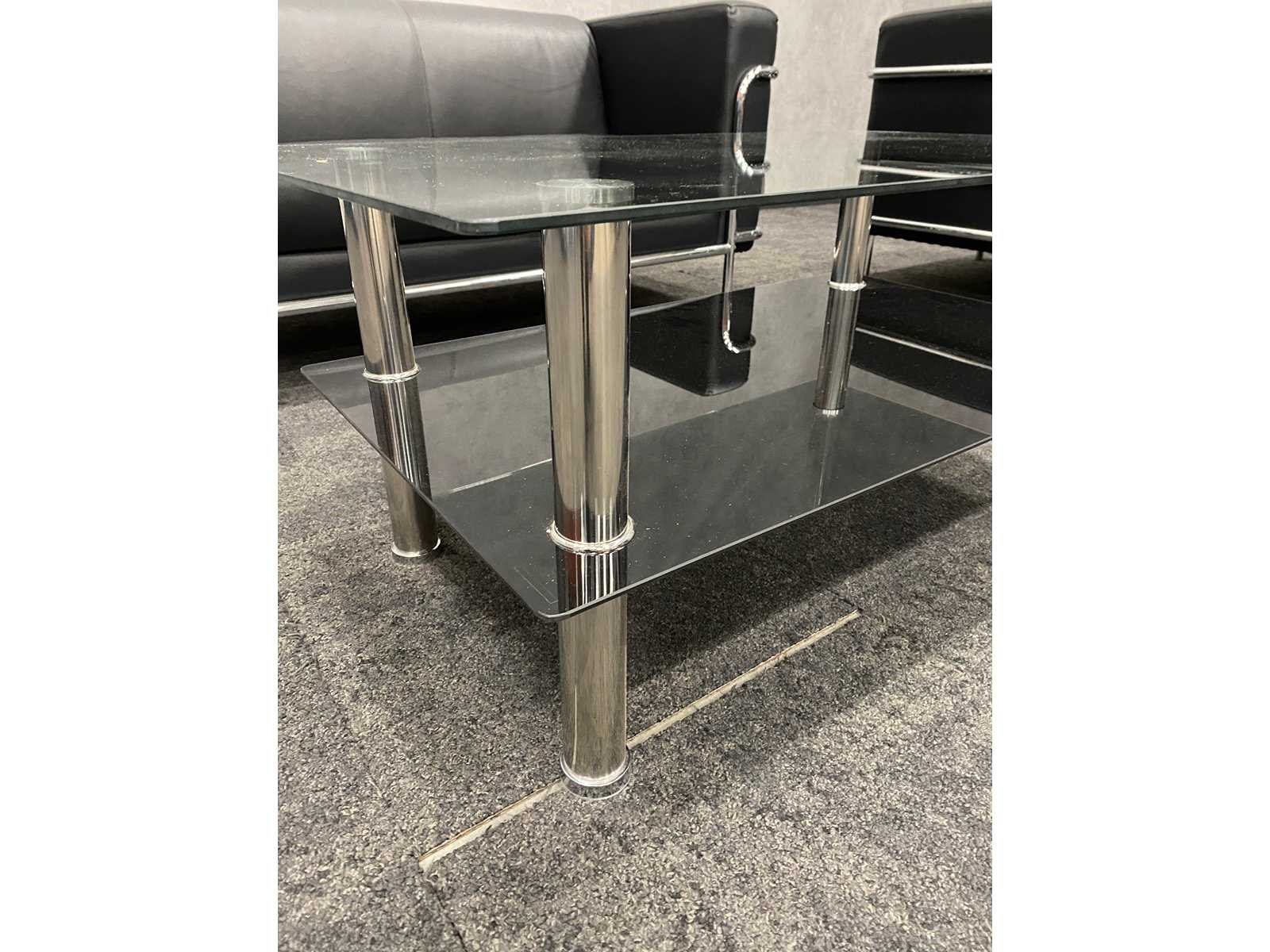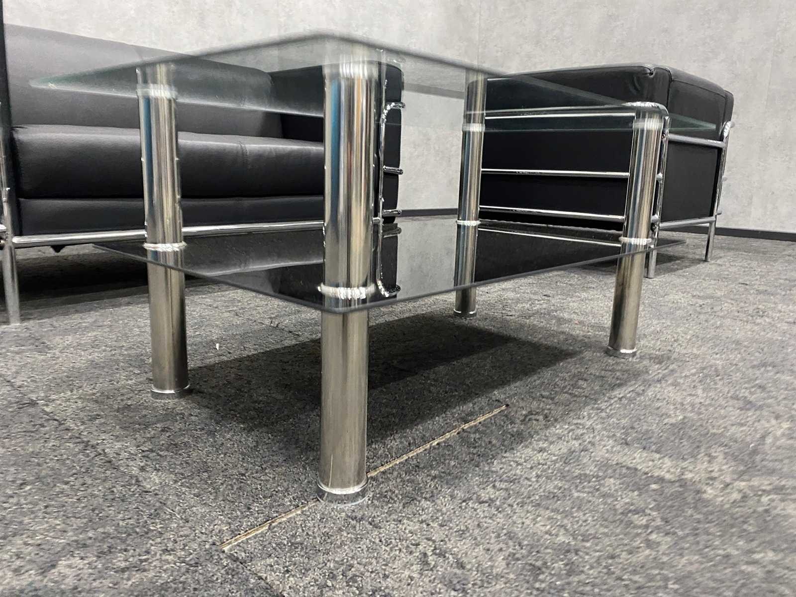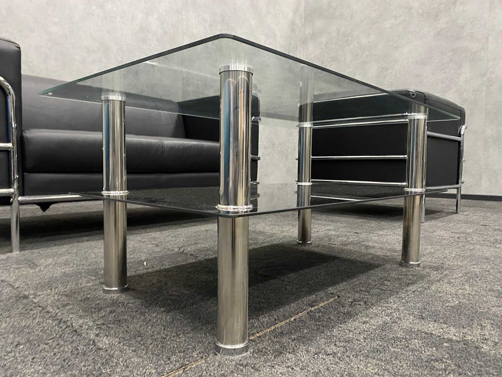 Afm. sofa ca. hxbxd 70x135x80 cm. -- Afm. fauteuil ca. 70x93x80 cm. -- Afm. tafel ca. 45x100x60 cm. Nee Kleur: chroom, zwart