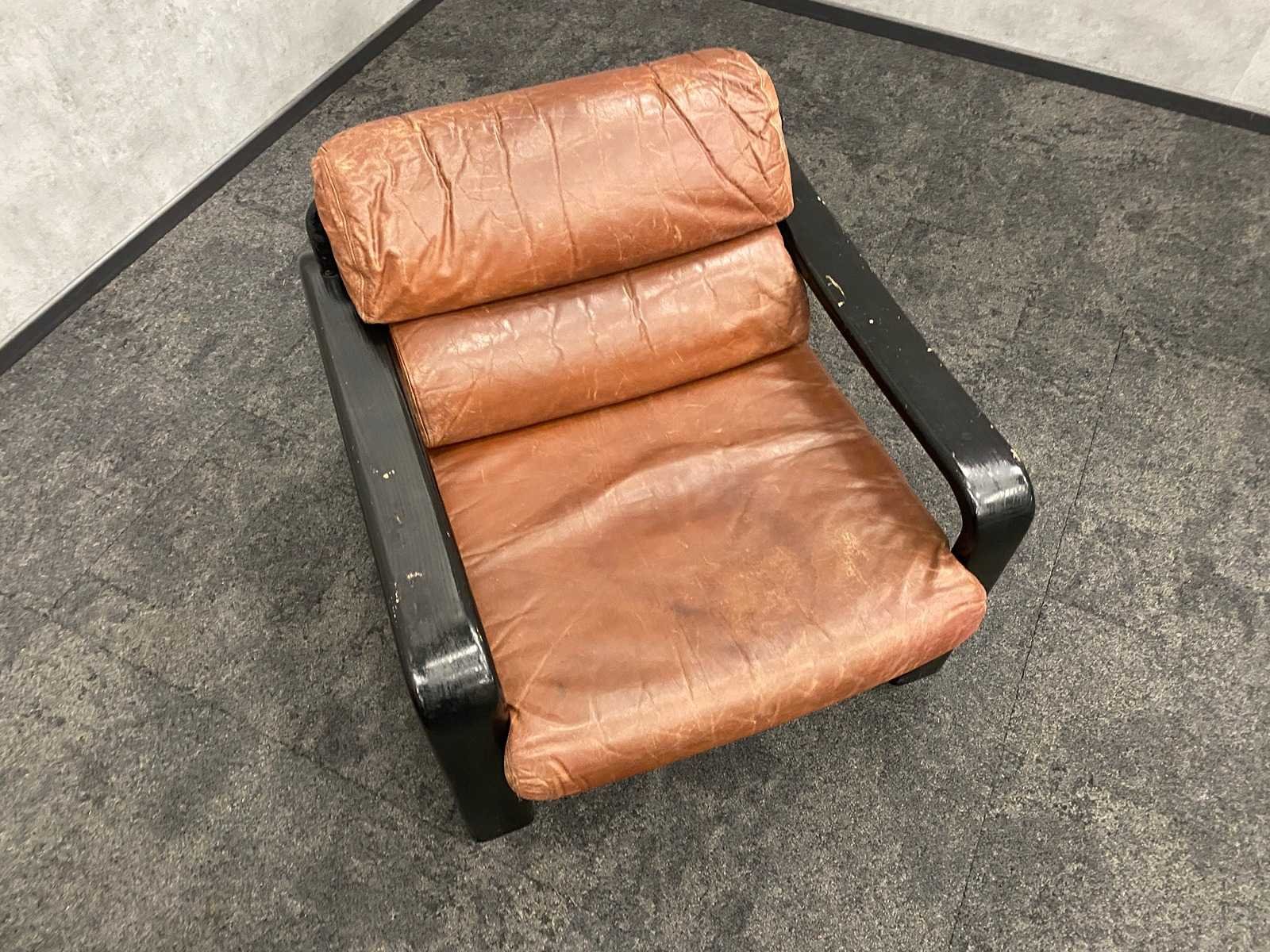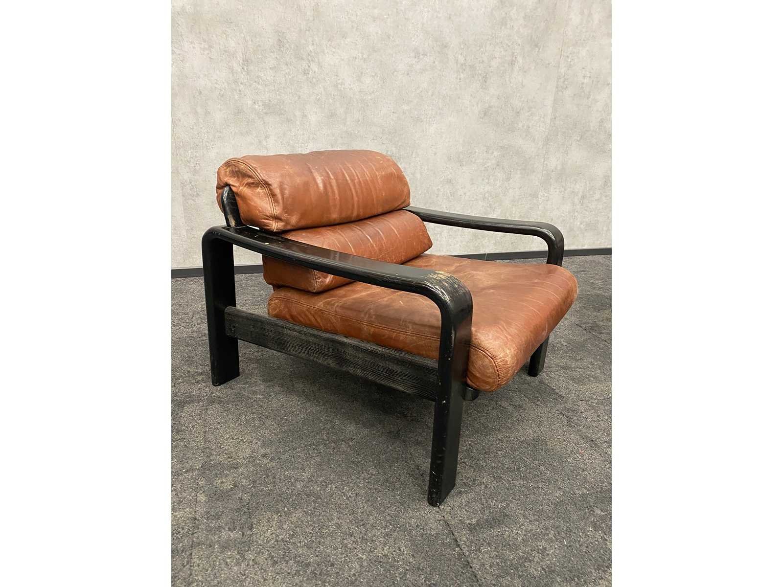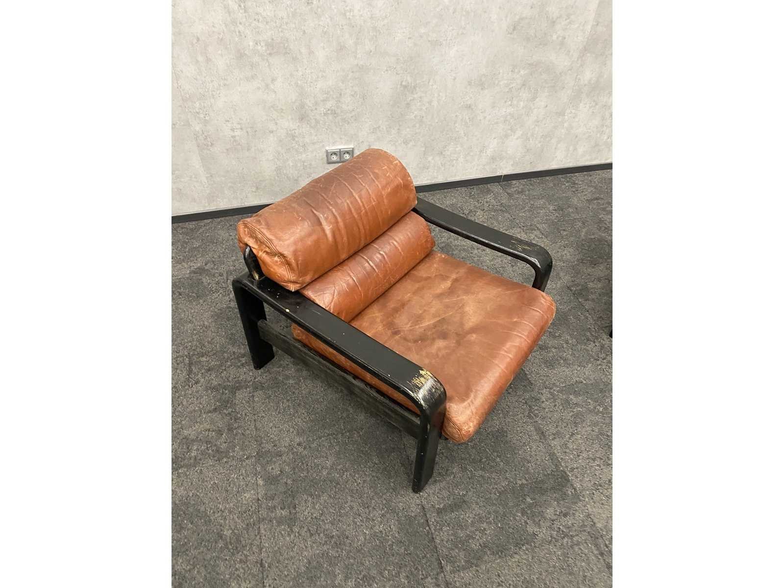 Afm. ca. hxbxd 70x80x88 cm. Nee Zithoogte: 36cm Materiaal: hout, leder
