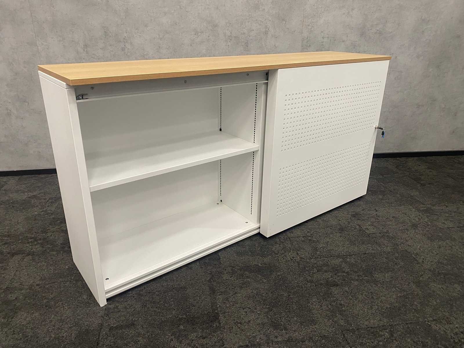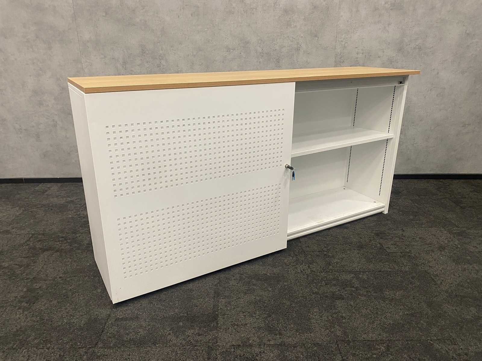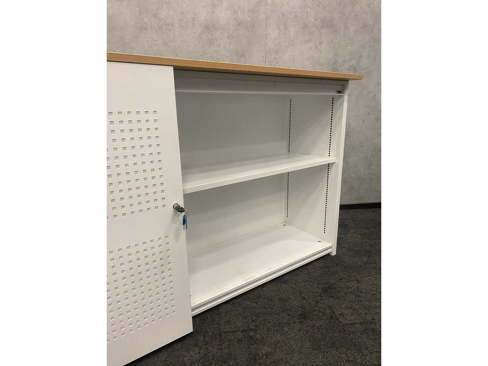 Met sleutel, v.v. 2 verstelbare legborden Nee Kleur: wit, eiken Breedte: 200cm Hoogte: 102cm Diepte: 50cm Materiaal: metaal, melamine