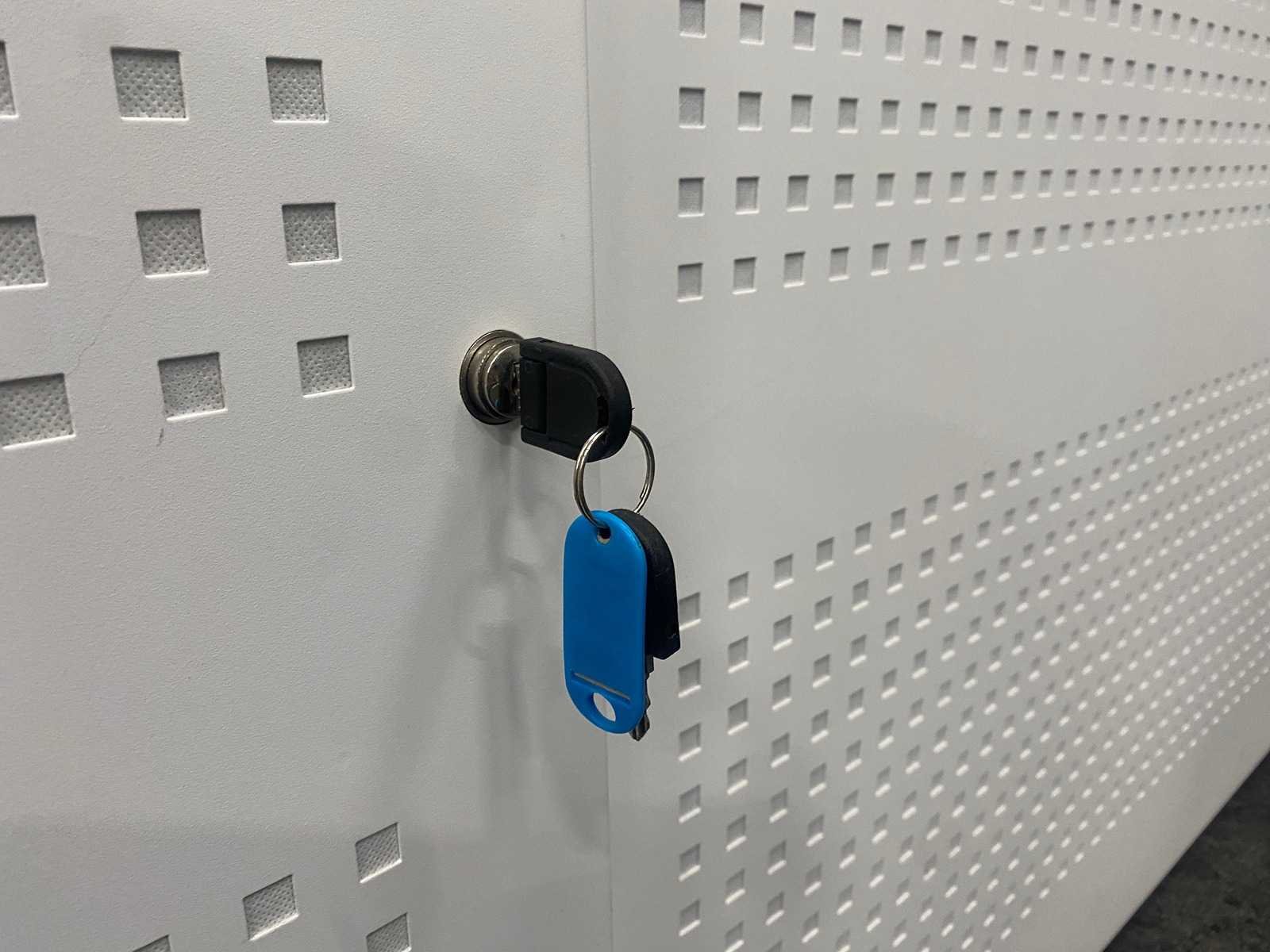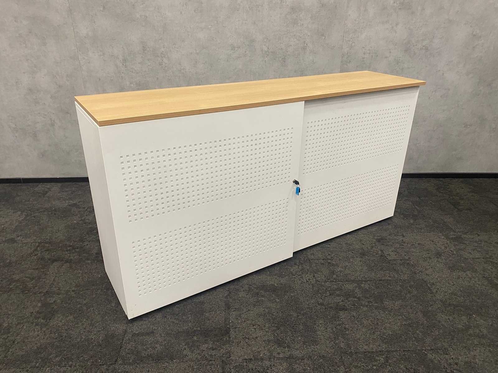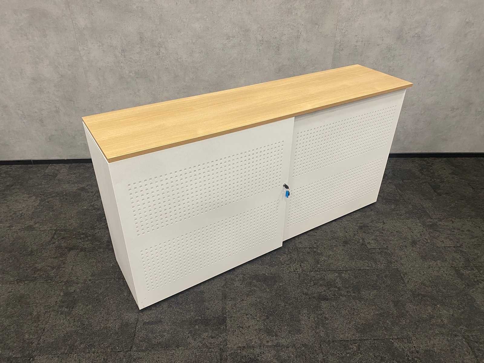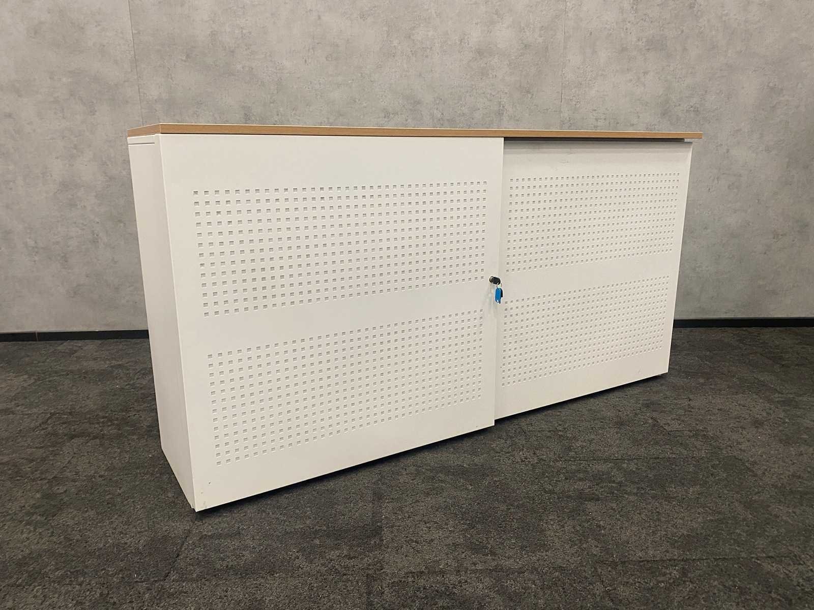 Met sleutel, v.v. 2 verstelbare legborden Nee Kleur: wit, eiken Breedte: 200cm Hoogte: 102cm Diepte: 50cm Materiaal: metaal, melamine