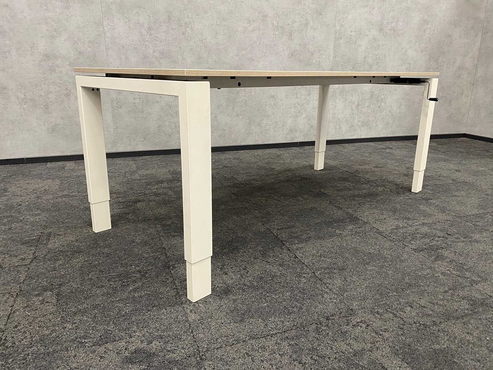 Nee Merk: Vepa Slingerbureau: true Kleur: wit, hout Lengte: 180cm Breedte: 80cm Materiaal: metaal, melamine