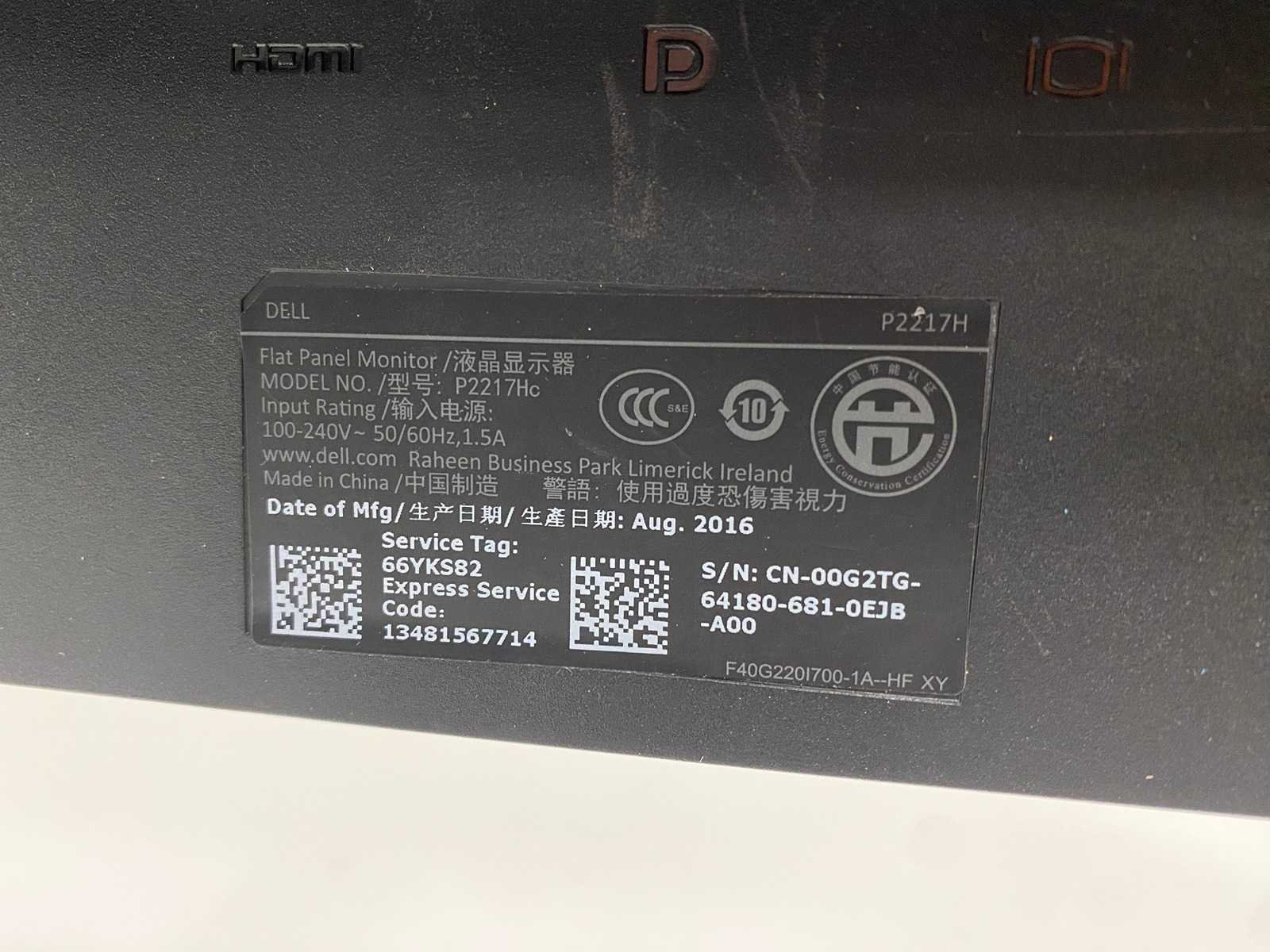 Met ergonomisch verstelbare dubbele monitorarm v.v. bureauklem. Nee Merk: Dell P2217Hc Met voedingskabel: true