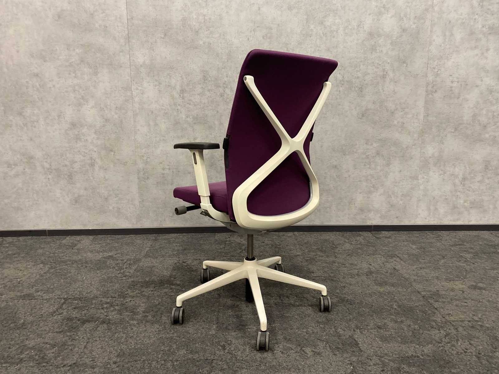 V.v. 4D verstelbare armleggers, zithoogte en zitdiepte verstelbaar, kantelmechanisme rugleuning , wit 5-teens voetenkruis, paarse stoffering, verstelbare lendensteun, gewichtsregeling, Nee Merk: Sedus