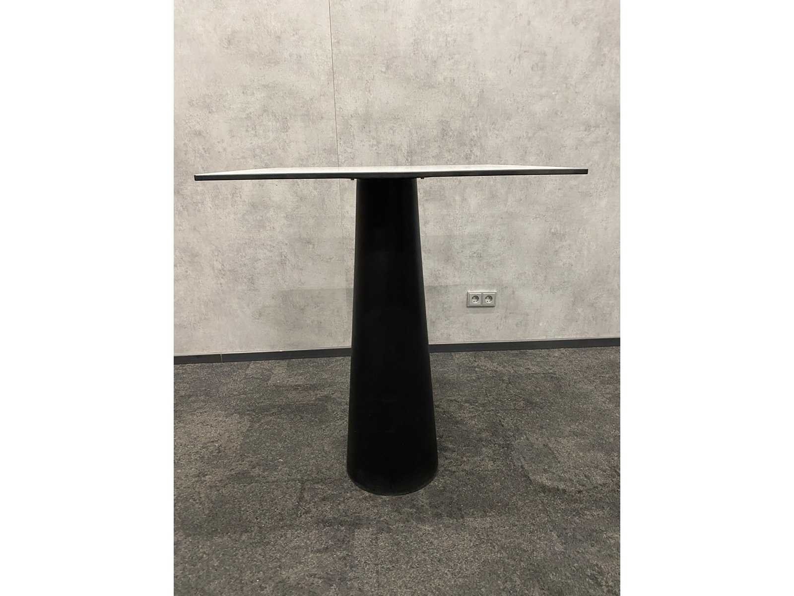 Kavel bestaande uit 2x Johanson design Piano barkruk v.v. zwart polyurethaan zitting en verchroomd onderstel v.v. voetensteun -- 1x Moooi container design tafel van Marcel Wanders. Nee Merk: Moooi/ Johanson Kleur: zwart, chroom, wit Lengte: 80cm Breedte: 80cm Hoogte: 99cm Zithoogte: 78