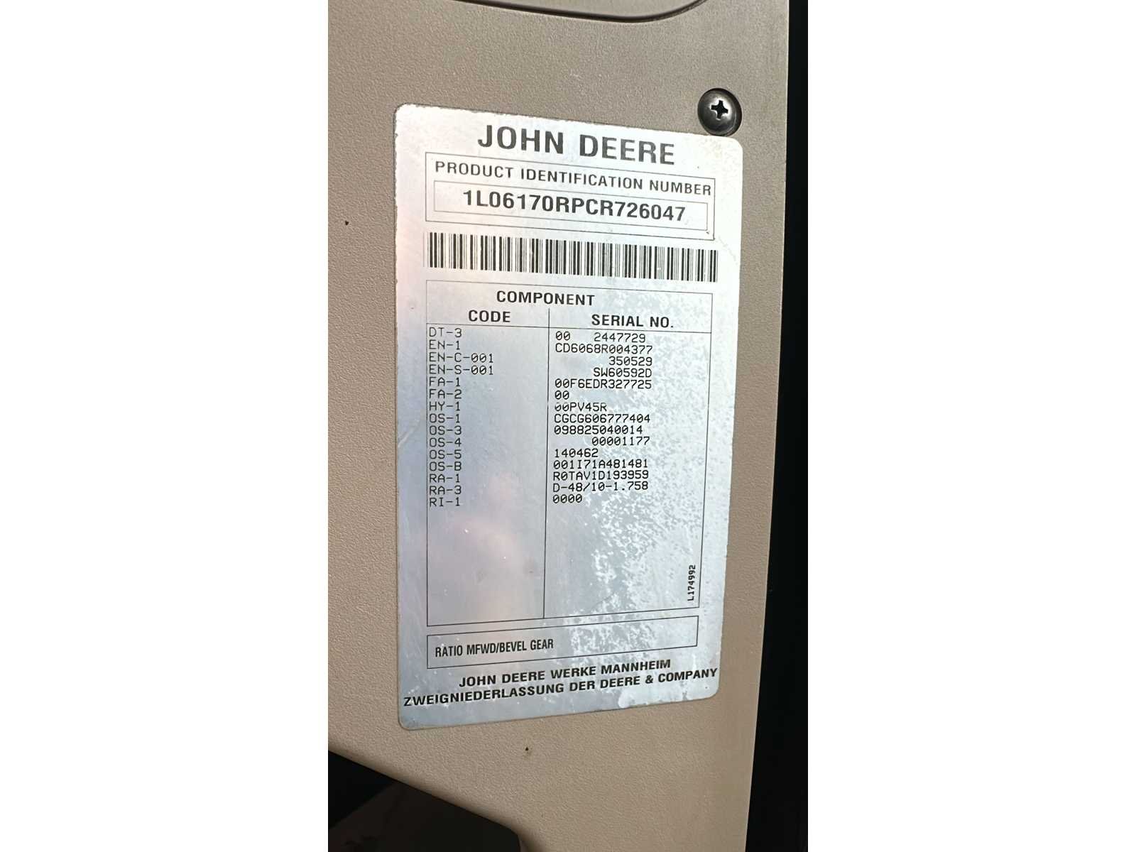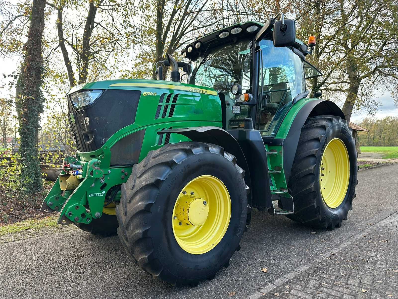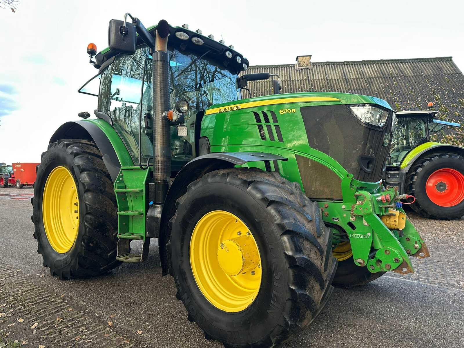 John Deere 6170R Autopower; 170 pk.; 6 cilinder; 13287 uur; Bouwjaar 2012; frontjes en aftakte; geveerde vooras; hydr. Geveerde cabine; luchtremmen; load sensing; 540/540E/1000 aftakas; banden 650/65x 42 en 540/75x28; 3x dw. Ventielen; remventiel; anelverstel trekhaak; kipperknobbel. No Merk: John Deere Type: 6170R Autopower Bouwjaar: 2012 Serienummer: 1L06170RPCR726047 Kenteken: TJJ-29-D Motorvermogen (kW): 126kW Afgelezen urenstand: 13287 Versnellingsbaktype: Vario Aftakastoerental: 1000rpm Aantal hydraulische ventielen achter: 3 Bandenmaat voor: 540/75r28 Bandenmaat achter: 650/65r42 Fronthefinrichting: true Frontaftakas: true Cabine: true Kentekenpapieren compleet?: true Datum eerste toelating: 2012-06-30 Nationaliteit documenten: Nederlands