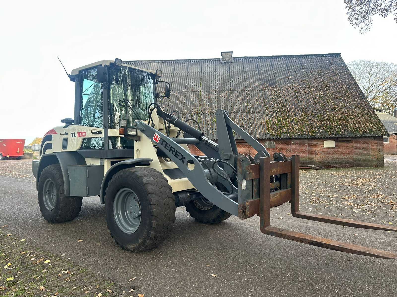 Deutz motor 75 pk.; airco; snelgang 30 km/h.; 6000 kg. Eigen gewicht; hydr. Vergrendeling; 3e functie; banden 405/70r20; inclusief palletvorkenbord. Nee Merk: Terex Type: TL 100 Bouwjaar: 2010 Serienummer: TL01001091 Kenteken: TJJ-01-F Brandstof: diesel Cabine: true Afgelezen urenstand: 8286