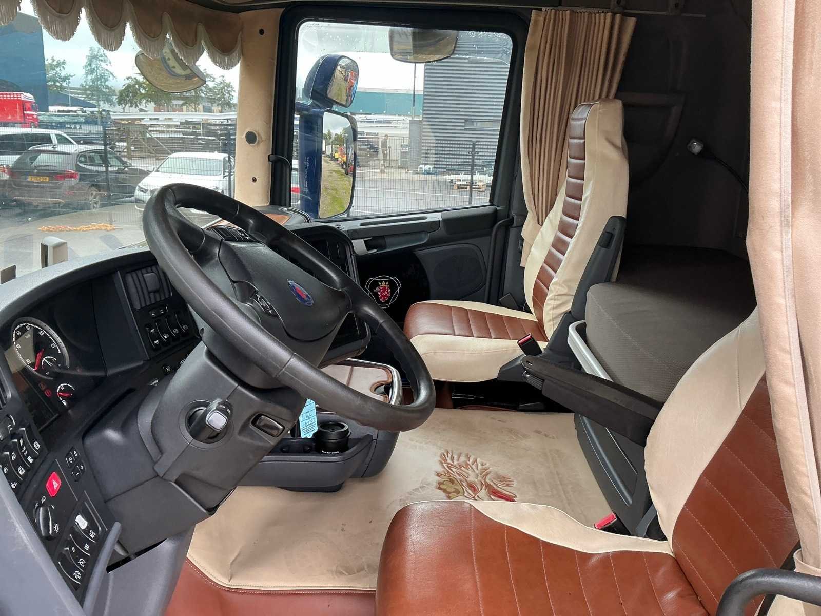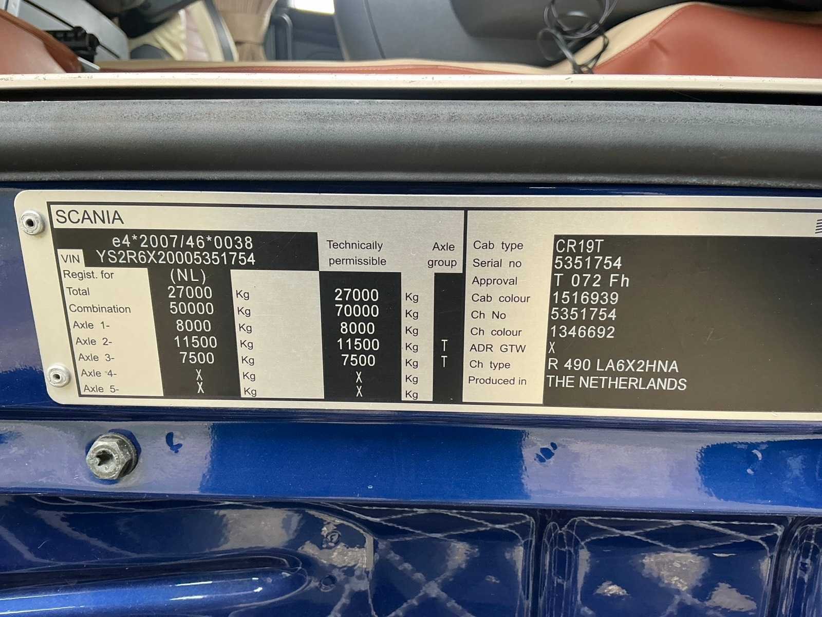 Voorzien van airco, luxe bekleding, 3as als lift-as, dubbele dieseltank, eigen gewicht 9979kg, max massa voertuig 27000kg, max massa samenstel 50000kg. Nee Kenteken: 16-BDT-1 Merk: Scania Type: R490 LA6x2HNA streamline Bouwjaar: 2014 Chassisnummer VIN: YS2R6X20005351754 Cilinderinhoud: 12742cc Kilometerstand bij opname: 1040372km APK vervaldatum: 2024-10-28 Datum eerste toelating: 2014-04-18 Datum eerste toelating (NL): 2014-04-18 Type transmissie: Automaat met 3e pedaal Aantal assen: 3 Asconfiguratie: 6x2 Fuel Type: Diesel Laadvermogen: 17121kg Aantal sleutels: 1 Emissieklasse: Euro 6 Slaapcabine: true Startinformatie: Start en rijdt Nationaliteit documenten: Nederlands Aantal zitplaatsen: 2 Zelf rijdend exporteren: Niet mogelijk No self drive export!: true