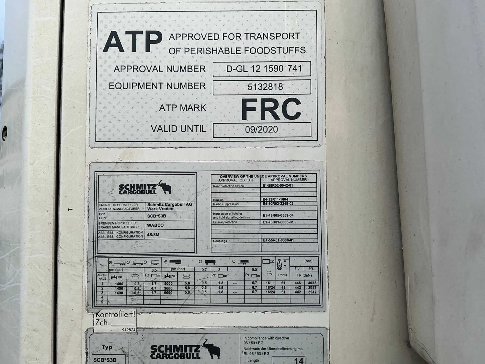 Voorzien van: Carrier Vector 1950 Mt koelinstallatie, digitale uitlezing, urenstand onbekend, hangend vlees rails.luchtgeveerde Schmitz assen, ferry ogen Nee Merk: Schmitz cargobull Type: SCB*S3B Bouwjaar: 2014 Chassisnummer VIN: WSM00000005132818 Kenteken: ON-48-KT Datum eerste toelating (NL): 2014-09-25 Datum eerste toelating: 2014-09-25 APK vervaldatum: 2025-12-20 Aantal assen: 3 Laadvermogen: 32819kg Koeltrailer: true Eigen gewicht: 9181kg Totale afmeting L: 1360mm Totale afmeting Breedte: 2550mm Totale afmeting Hoogte: 4000mm Zelf rijdend exporteren: Niet mogelijk No self drive export!: true