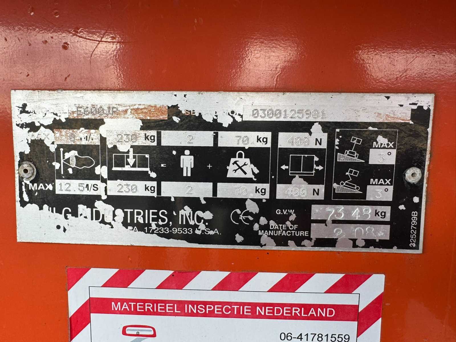 Nee Merk: JLG Type: 600JP Bouwjaar: 2008 Afgelezen urenstand: 837