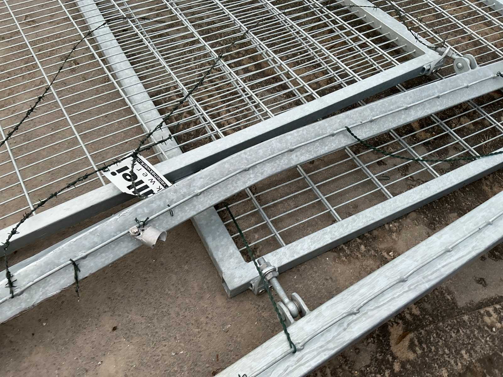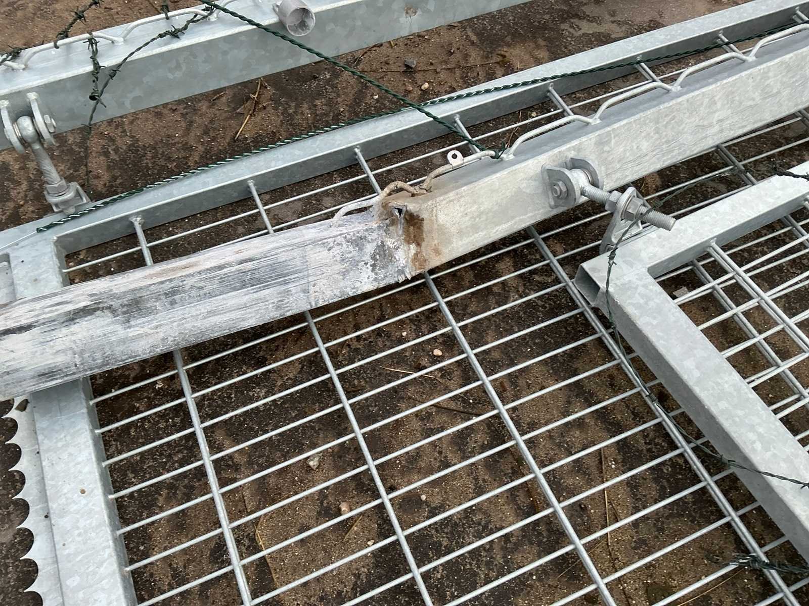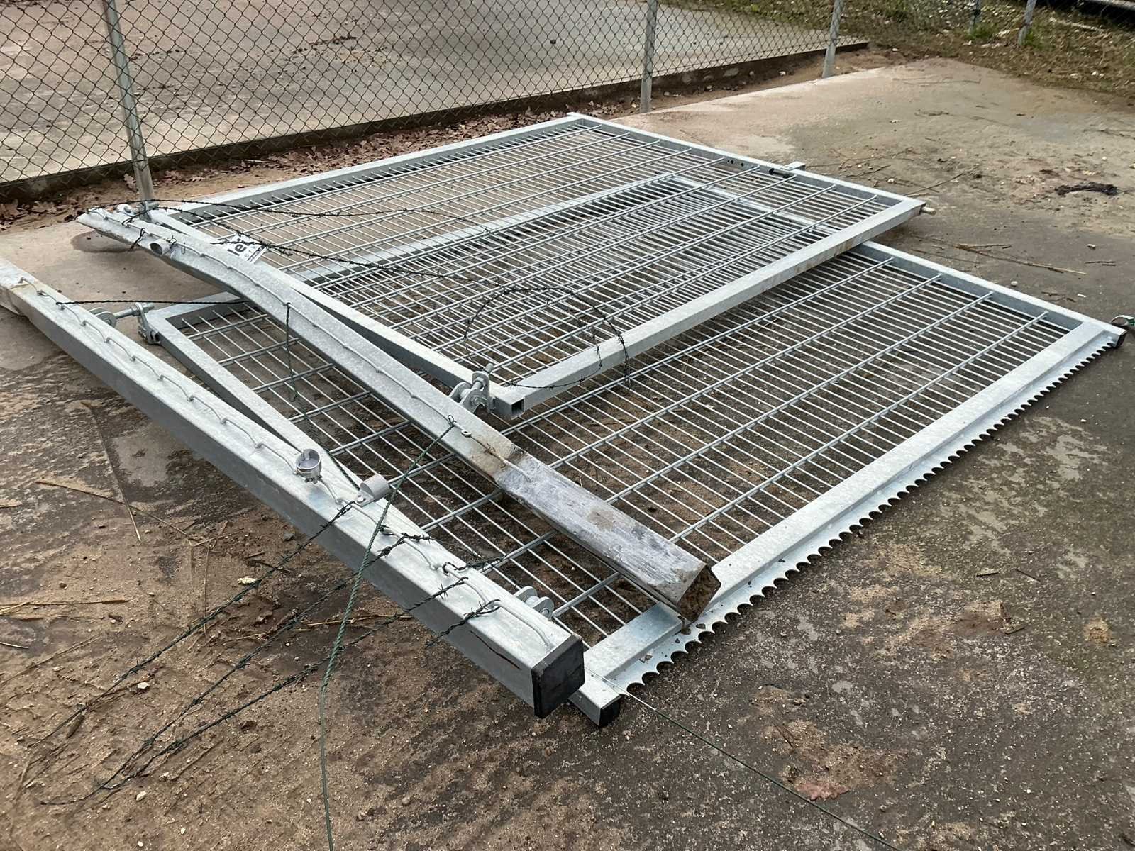 2 delig, afmeting poortdeel per stuk circa 247x207cm, hoogte paal totaal per stuk circa 280cm. Nee