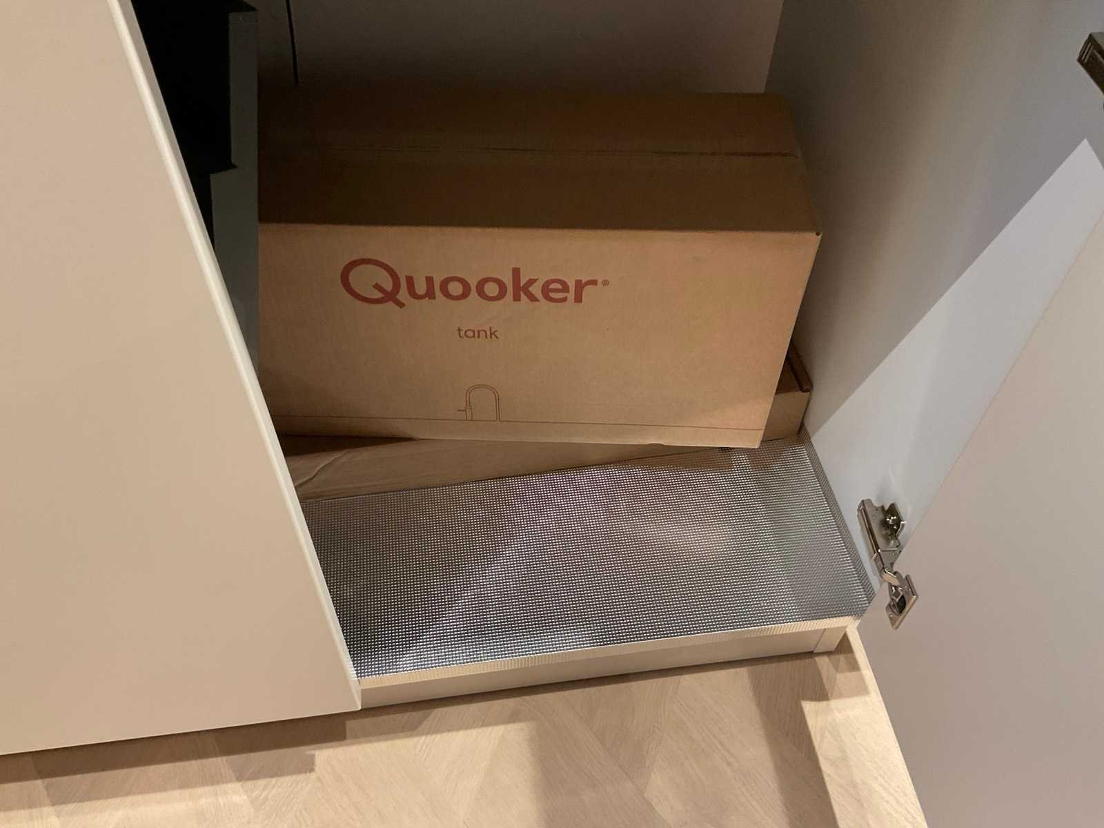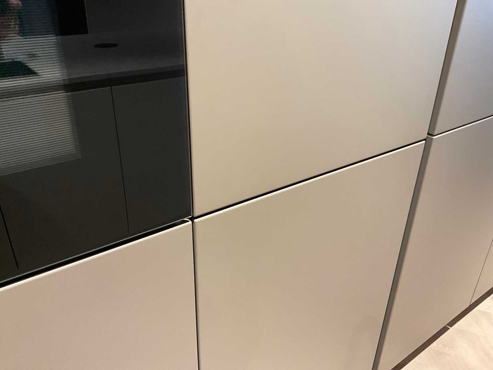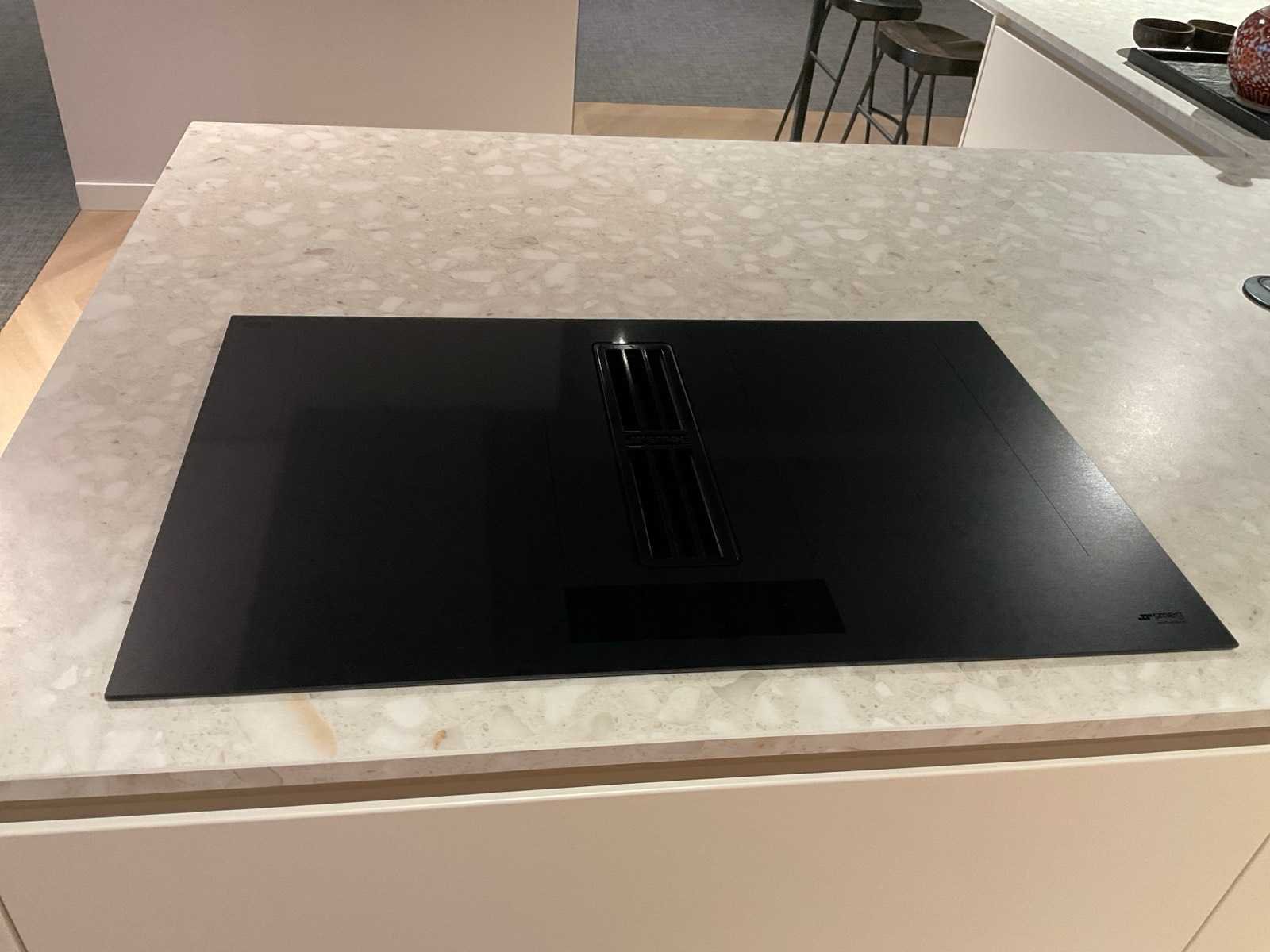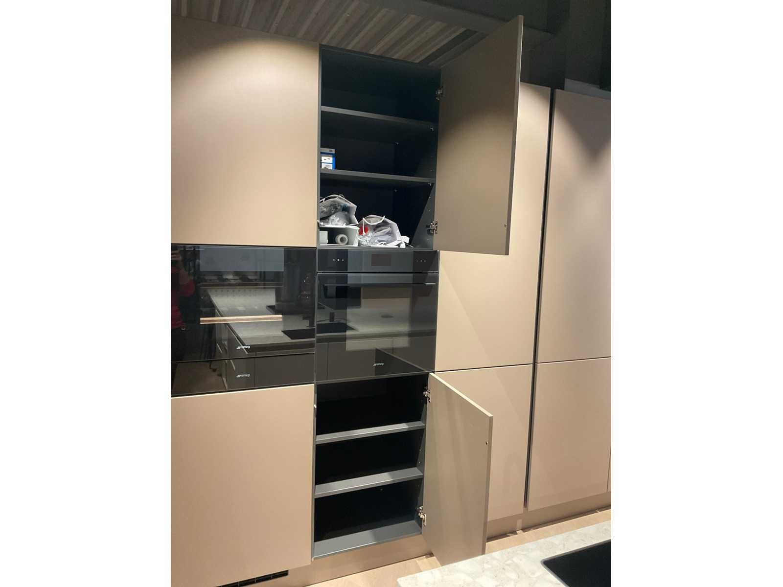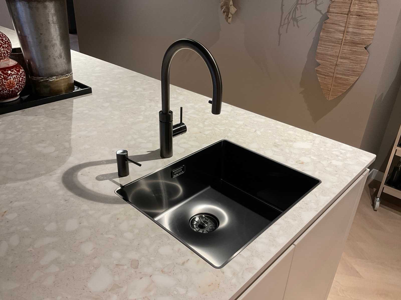 Kook-spoeleiland met tafel; indeling: 1 onderkast; 6 ladenkasten; waarvan 1 met binnenlade; 2 x bestekinzet; 3 open vakken; tafeldeel lengte 150 cm; Smeg 4-zone inbouw inductiekookplaat met geïntegreerde afzuiging; type HOBD382MB2; Bosch inbouw vaatwasser; type SBV4ECX23E; 13 couverts; Twist inbouw stopcontact; indeling kastenwand: 6 hoge kasten; waarvan 1 met 5 binnenladen en 1 met uittrekplateau en 3-voudige wandcontactdoos; Smeg inbouw oven met magnetron; type SO6102M2B3; inhoud 68 liter; Smeg inbouw wijnklimaatkast; type CVI29B3; inhoud 29 flessen; Smeg sommelierslade; type CPS 115B3; Smeg inbouwkoelkast type S8L174DNE; inhoud 310 liter; Smeg inbouwvriezer; type S8F174DNE; inhoud 204 liter; Scan de QR code voor meer informatie; LET OP: door koper zelf ter plaatse nog te demonteren; zonder de getoonde accessoires Nee Merk: Schüller Model: Siena Lengte: 369cm Hoogte: 243cm Kraan: Quooker 3-in-1 kokendwaterkraan met 3 liter reservoir en zeeppompje Gun metal Gootsteen: Lorreine onderbouw rvs gun metal Aanrechtblad: Kermie Just Ceramics Retrostone silk Lengte kookeiland: 378cm Breedte kookeiland: 273cm Hoogte kookeiland: 96cm Hoofdkleur: magnolia-Sepiabruin fluweel mat