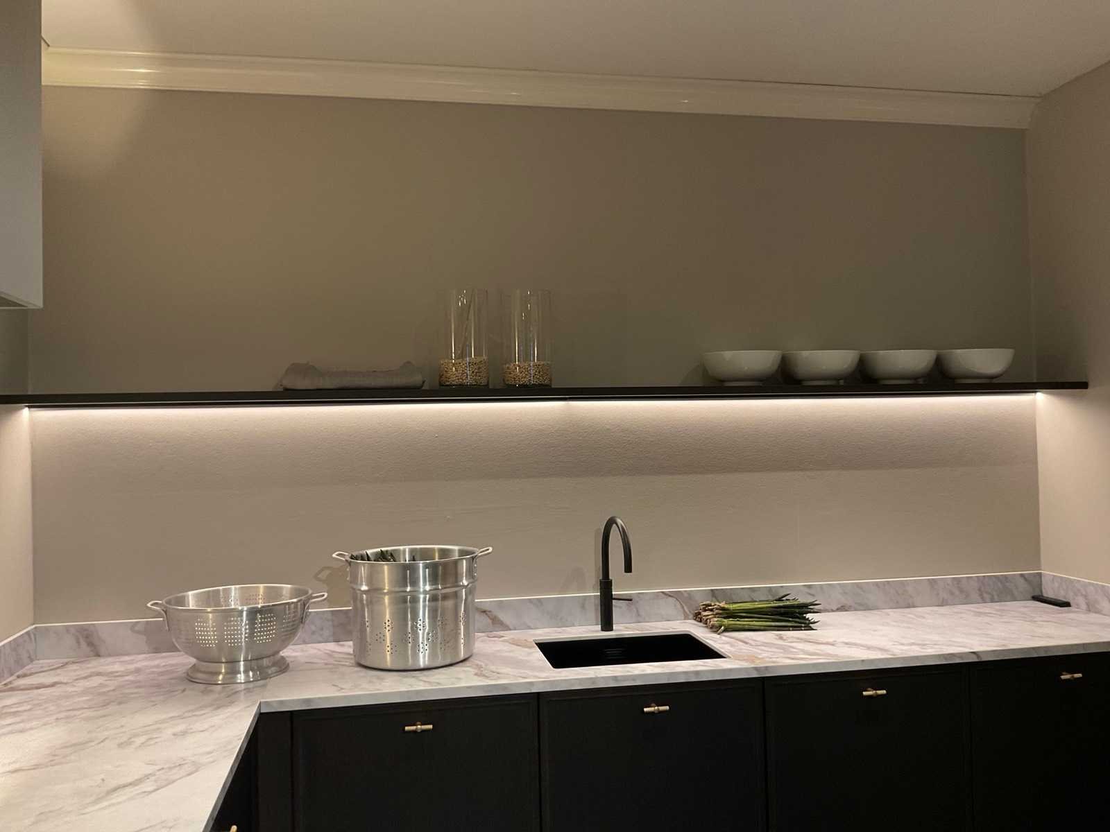 Hoekopstelling indeling: 4 ladenkasten waarvan 2 met 1 binnenlade en 1 met 2 binnenladen; 1 houten vakverdeling; hoekkast met 2 uitzwenkplateaus; 1 onderkast; wandplank afm. 328x25 cm met ledverlichting en afstandsbediening; Siemens inbouw inductiekookplaat; type EX877NV6E; 81 cm breed; Siemens inbouw afzuigunit; type LB88574; 86 cm breed; Siemens inbouw vaatwasser; type SN73E804BE; 13 couverts; kastenwand afm. 185x58x235 cm; indeling: 3 hoge kasten; Siemens inbouwoven met magnetron; type HM936GCB1; inhoud 67 liter; Siemens inbouwkoelkast; type KI81RSDE0; inhoud 319 liter; scan de QR code voor meer informatie; LET OP: door koper zelf ter plaatse nog te demonteren; zonder de getoonde accessoires Nee Merk: MK Model: Valencia Lengte: 370cm Breedte: 328cm Kraan: Quooker black 3-in-1 kokendwaterkraan met 3 liter reservoir Gootsteen: Lorreine onderbouw zwart Werkblad hoogte: 98cm Aanrechtblad: Kemie CR12 Neos Monate Mat met spatplint 10 cm Hoofdkleur: Eiken fineer Cubaniet grijs- kastenwand met eiken latten