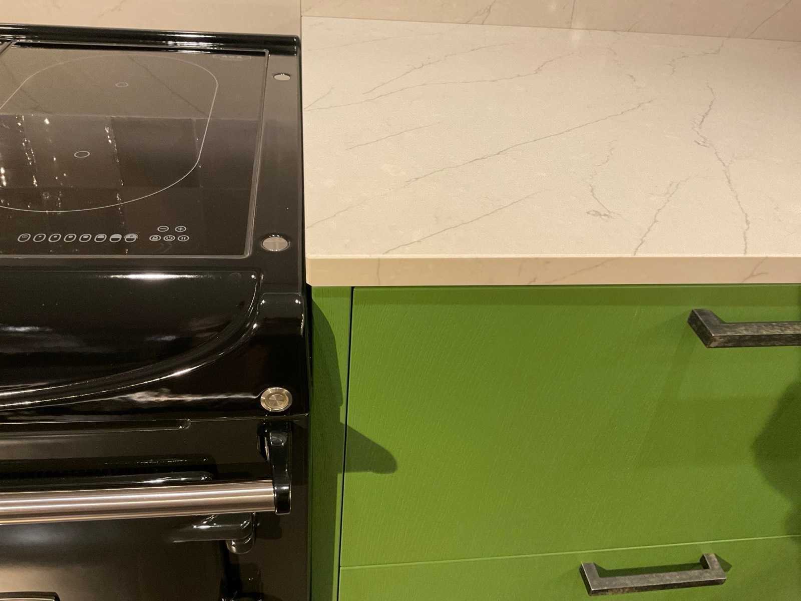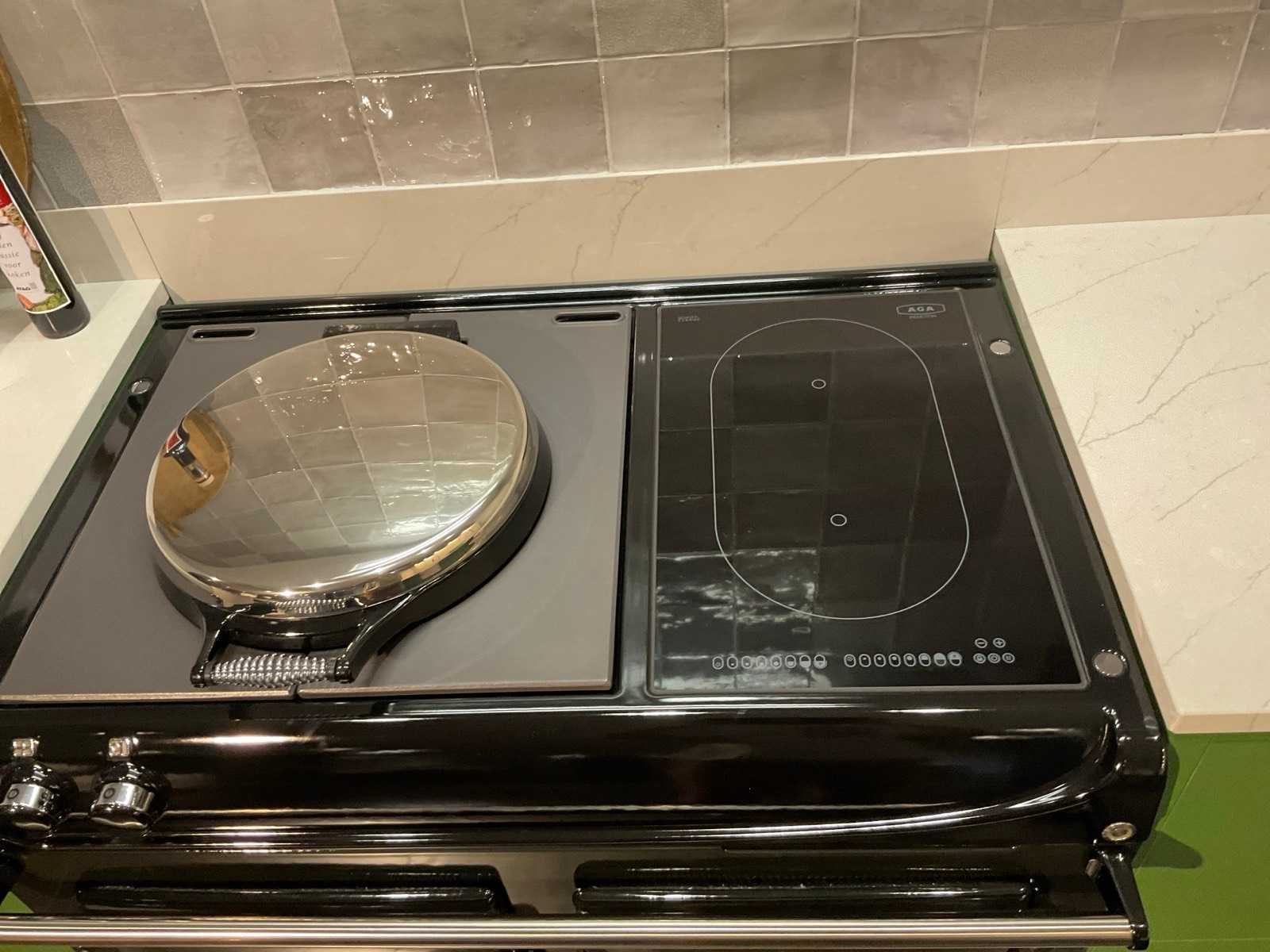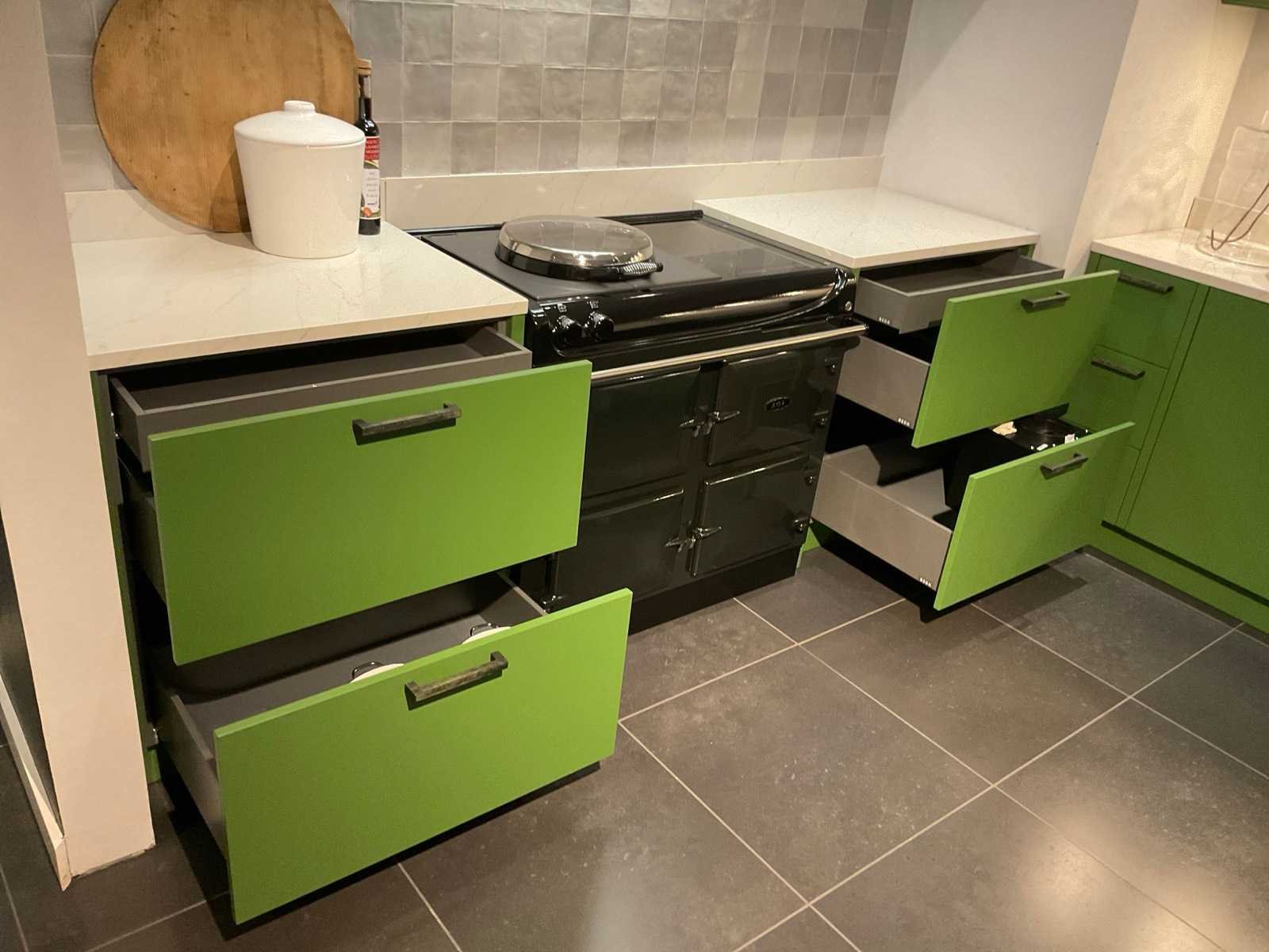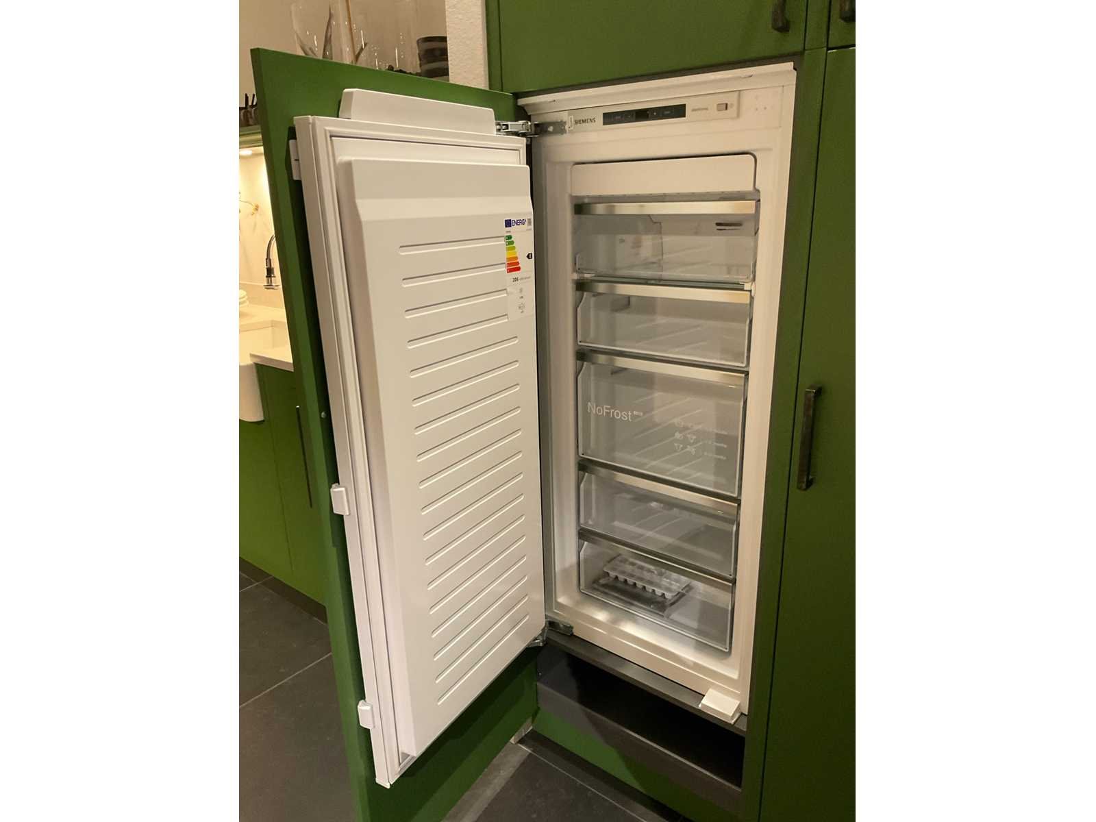 Wandopstelling 1 indeling: 2 ladenkasten met binnenlade: AGA 4-zone inductie fornuis; type 100-4/4i; met bak-braad en sudder ovens en grillplaat; 98 cm breed; Novy inbouw plafond afzuigunit; type 898; zonder de ombouw; wandopstelling 2 indeling: 2 onderkasten en 2 ladenkasten; Siemens inbouw vaatwasser; type SX63H800BE; 14 couverts; wandplank met kroonlijst en verlichting; afm. 260x30 cm; kastenwand indeling: 2 hoge kasten; 270 cm hoog; Siemens inbouw koelkast; type KI51FSD40; inhoud 222 liter; Siemens inbouw vriezer; type GI41NACE0; inhoud 130 liter met 5 laden; Scan de QR code voor meer informatie; LET OP: door koper zelf ter plaatse nog te demonteren; zonder de getoonde accessoires Nee Merk: MK Model: Regina Lengte: 259cm Breedte: 263cm Hoogte: 271cm Kraan: Eeengreeps rvs mengkraan met afneembare kop Gootsteen: Villeroy &Boch onderbouwspoelbak keramiek Werkblad hoogte: 94cm Aanrechtblad: Kemie Just Luxury kleur Planet Venis met wandplint 10 cm Hoofdkleur: Sikkens J3.40.31 grasgroen