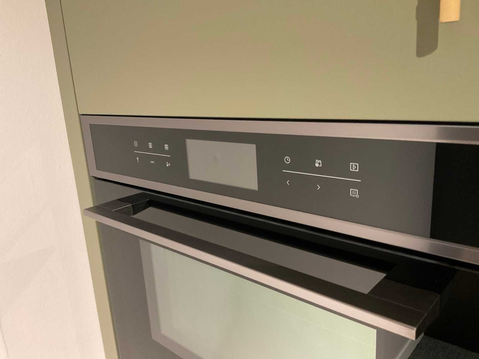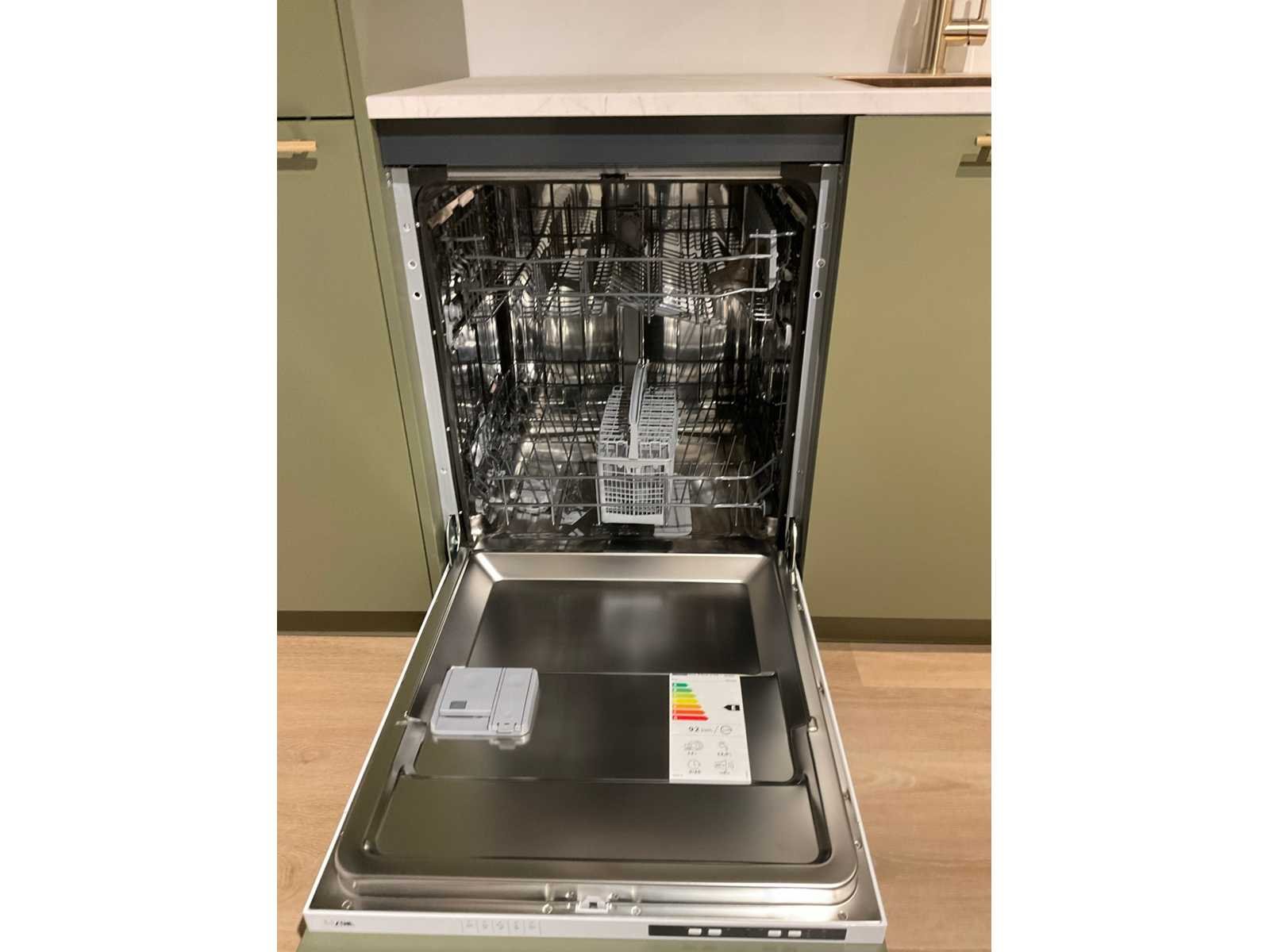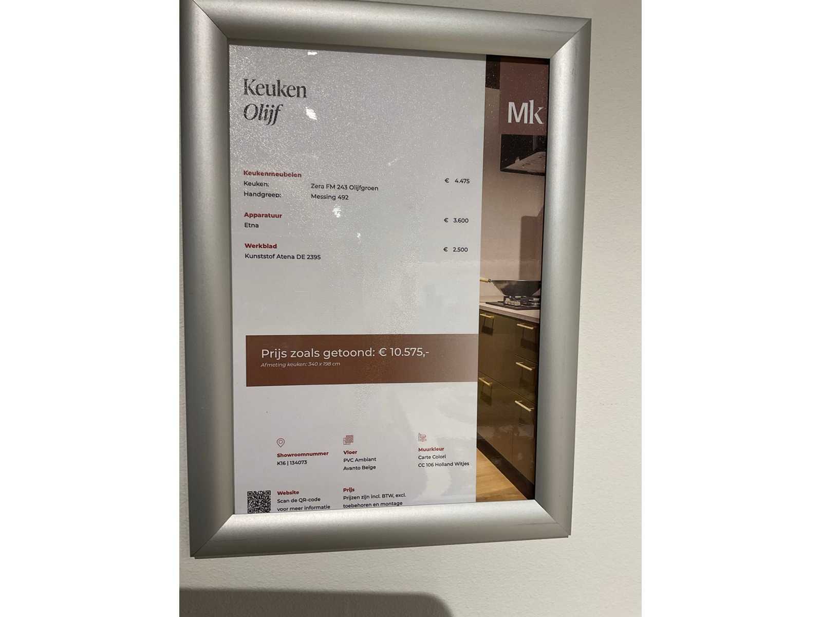 Indeling: 1 onderkast; 1 hoekkast met 2 uitzwenkplateaus; 2 ladenkasten; 2 hoge kasten waarvan 1 apothekerskast; barblad; Etna 4-pits inbouw gaskookplaat; type KG959ZTA; met wokbrander; Etna vrijhangende afzuigkap; type RA370ZWA; recirculatie; Etna inbouw combi-magnetron; type CM644T1; inhoud 44 liter; Etna inbouw koelkast; type KKD4088; inhoud 134 liter; Etna inbouw vaatwasser; type VW149M; 12 couverts; zonder het kozijn; scan de QR code voor meer informatie; LET OP: door koper zelf ter plaatse nog te demonteren; zonder de getoonde accessoires; zonder het raamkozijn Nee Merk: MK Model: Olijf Lengte: 340cm Breedte: 200cm Hoogte: 222cm Kraan: Lanesto eengreeps Patinated Brass Gootsteen: Lanesto vlakinbouw Patinated Brass Werkblad hoogte: 93cm Aanrechtblad: Dekker Greengridz Athena DE2395 Hoofdkleur: Olijfgroen