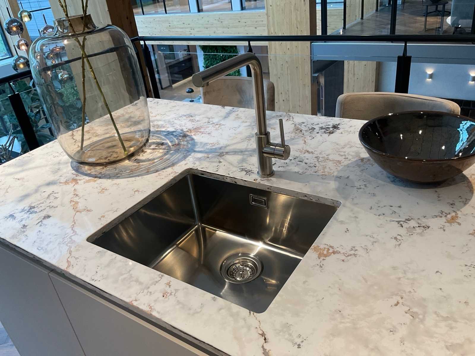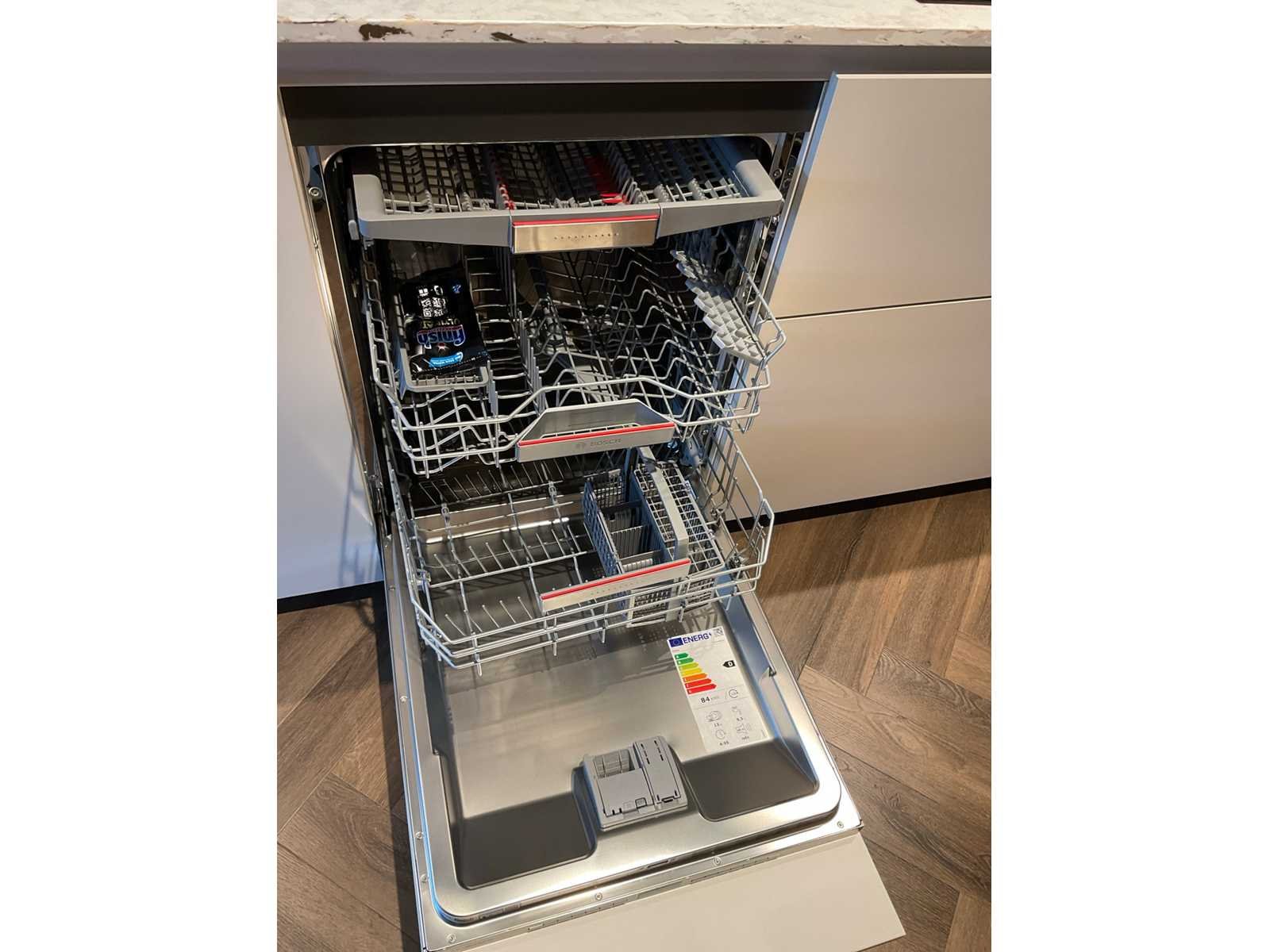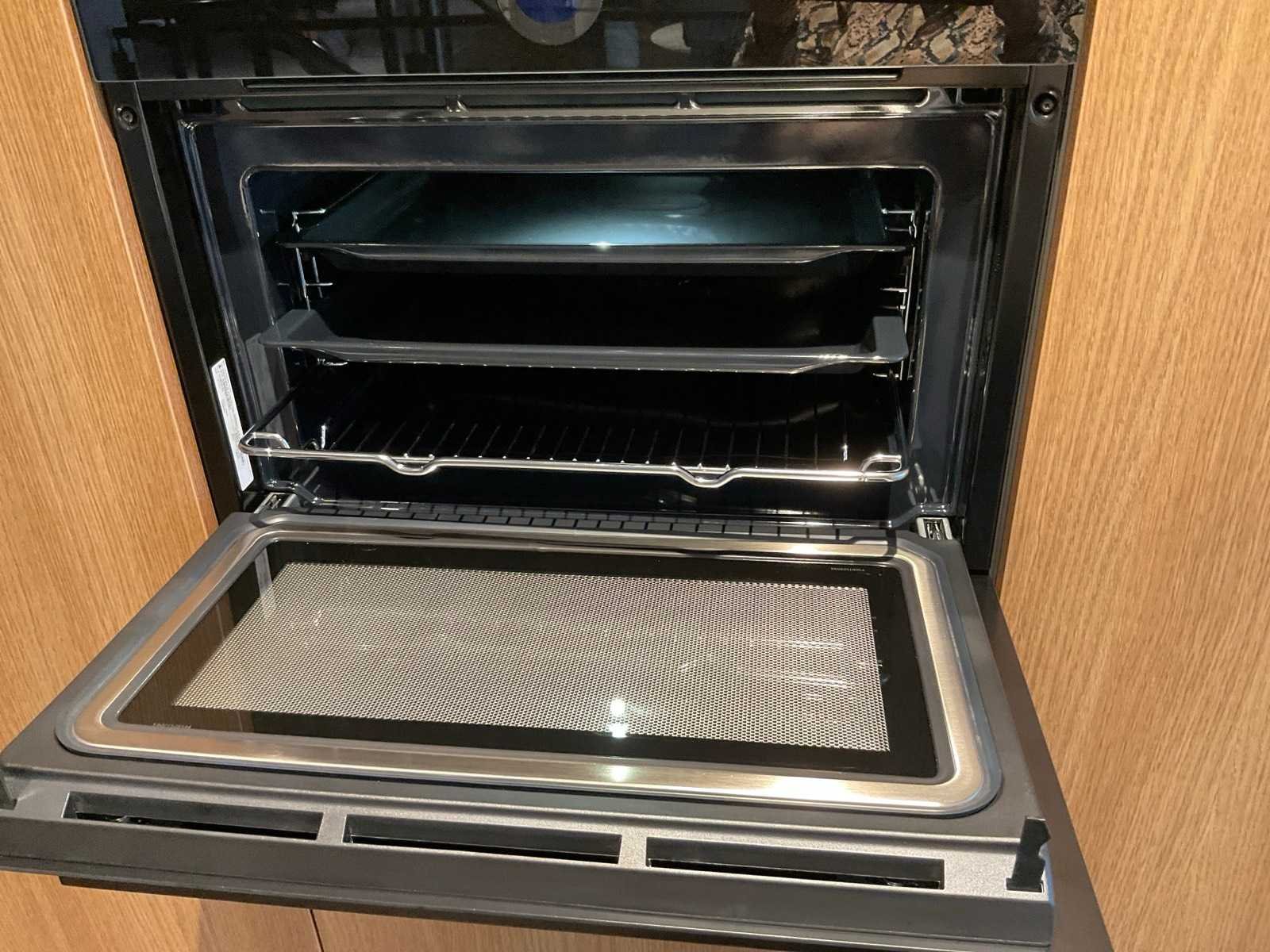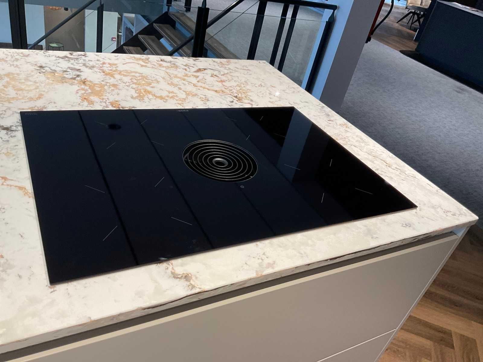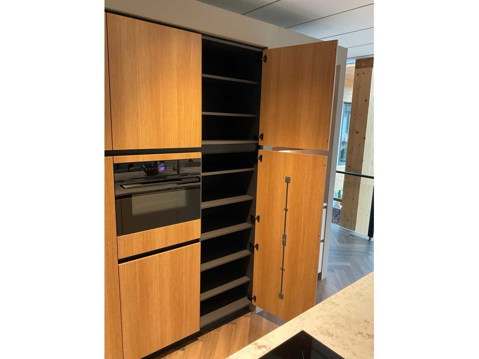 Kook-spoeleiland met zitdeel; indeling: 4 onderkasten waarvan 1 ladenkast; Bora inbouw inductiekookplaat met kookveldafzuiging; type Puru; 76 cm breed; Bosch inbouw vaatwasser met besteklade; type SBH4HB800E; 13 couverts; Twist dubbele inbouw contactdoos; kastenwand afm. 180 cm breed en 235 cm hoog; indeling : 3 hoge kasten; 1 lade; Bosch inbouwoven met magnetron; type CMG9241B1; inhoud 45 liter; Bosch inbouwkoelkast; type KIR51ADE0; inhoud 247 liter; Coffeecorner 90 cm breed; indeling: 1 ladekast met binnenlade en bestekinzet; 2 wandplanken 90x20x5 cm met ledverlichting en dimschakelaar; Scan de QR code voor meer informatie; LET OP: door koper zelf ter plaatse nog te demonteren; zonder de getoonde accessoires; zonder de ombouw Nee Merk: MK Model: Natural Beach Kraan: eengreeps rvs Gootsteen: Reginox Houston onderbouw Werkblad hoogte: 100cm Aanrechtblad: Kemie composiet 20 mm Bianco Vintage glans Lengte kookeiland: 285cm Breedte kookeiland: 100cm Hoogte kookeiland: 100cm Hoofdkleur: Loft Nature Oak en Beach Grey HPL