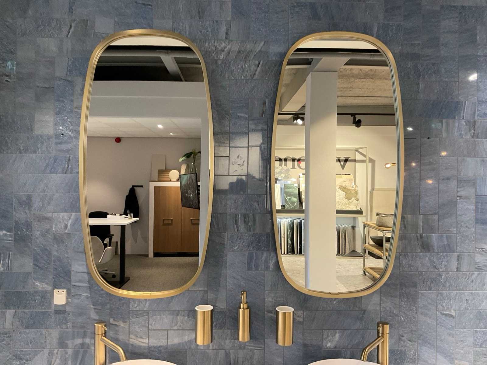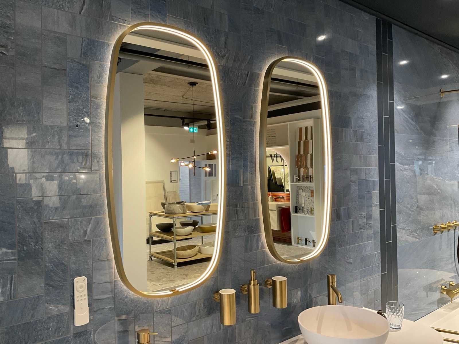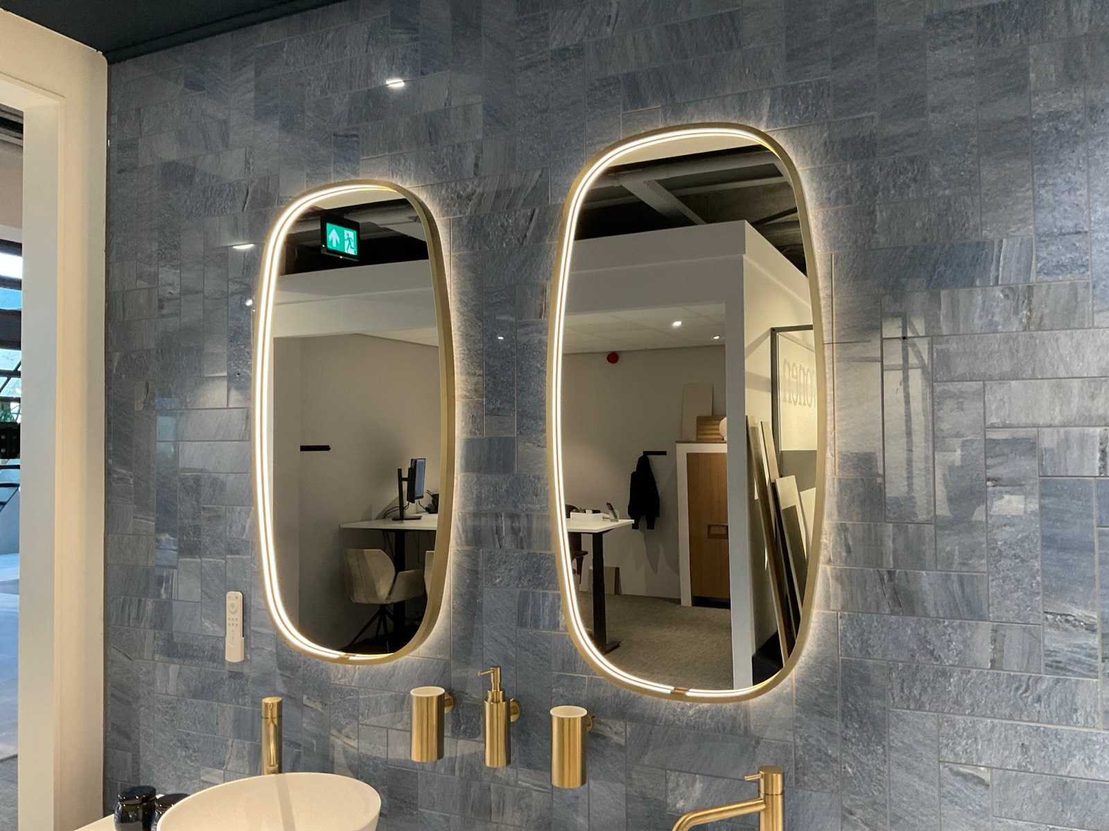 In geborsteld messing kader; anticondens en afstandsbediening; LET OP: door koper zelf ter plaatse nog te demonteren; zonder de getoonde accessoires Nee Merk: Hotbath Lengte: 100cm Breedte: 50cm
