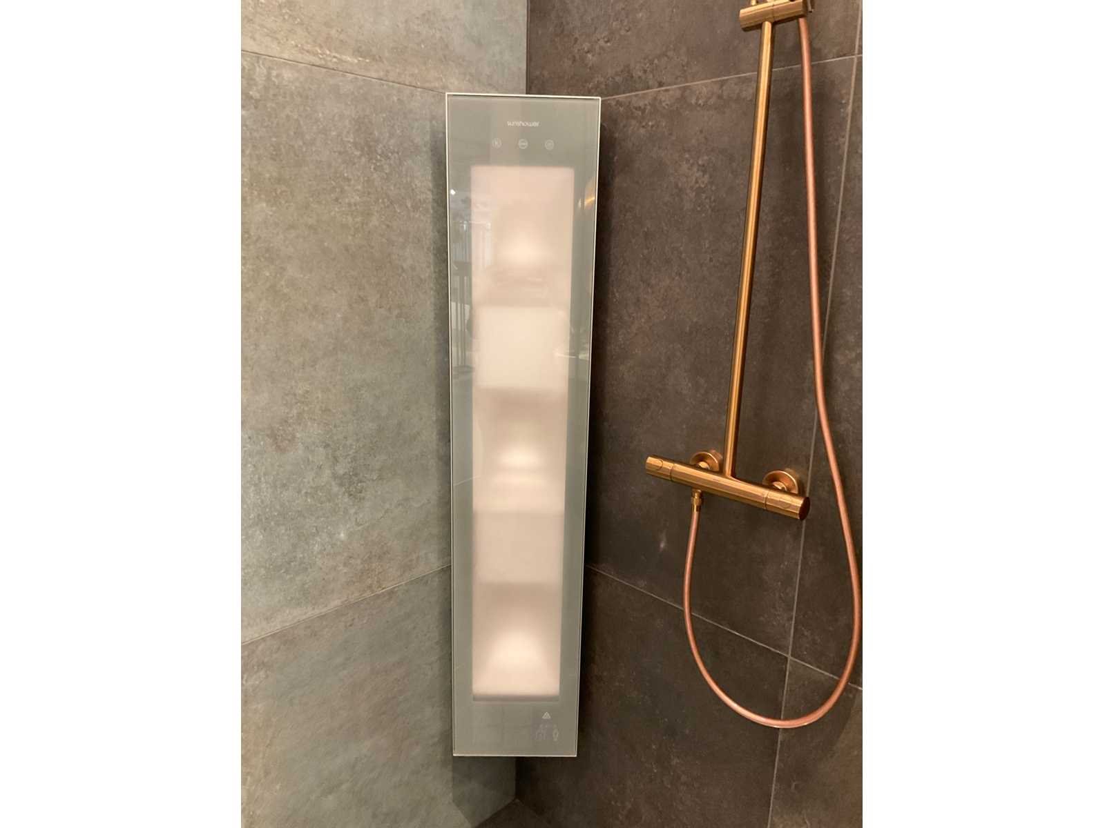 Hoekopbouw; LET OP: door koper zelf ter plaatse nog te demonteren; zonder de getoonde accessoires Nee Merk: Sunshower Model: Combi Breedte: 29cm Hoogte: 144cm